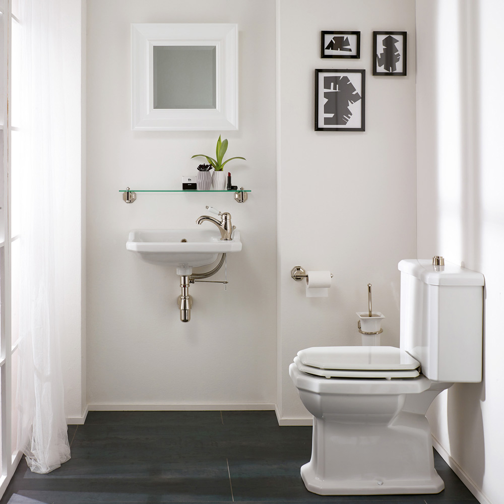 Weißes Keramik-Wandwaschbecken im klassischen Stil, hergestellt in Italien, Nausica.