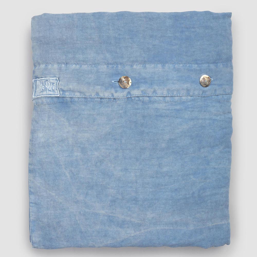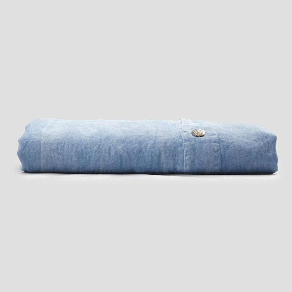 Hellblauer Leinen Doppelbettbezug mit Knöpfen und Flat - Ljuba
