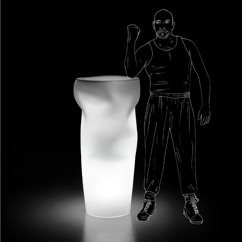 Leuchtende Gartenvase komplett in Italien hergestellt aus farbigem Polyethylen mit mattem Finish, komplett mit LED-Beleuchtungsset . Ein originelles und vielseitiges Möbelstück , das durch ein besonderes Verfahren entsteht, bei dem die Vase einer "Kompressionsbehandlung" unterzogen wird, wenn das Material noch teilweise formbar ist oder unmittelbar nachdem es aus der Form genommen wurde. So entsteht ein industrielles Element , das durch eine handwerkliche Tätigkeit , die einzigartige Stücke hervorbringt, von Zeit zu Zeit eine andere Ästhetik annimmt. Die fließenden ungewöhnlichen Formen , die sich daraus ergeben, tragen dazu bei, ein weiches, einladendes und immer anderes Licht für jede Lampe zu verbreiten, einzigartig, aber seriell dank der praktischen und funktionalen LED-Beleuchtung , die ihren Wert und ihre Raffinesse unterstreicht. Komplett mit Stabilisierungs- und Befestigungssockel und Drainagerohr .