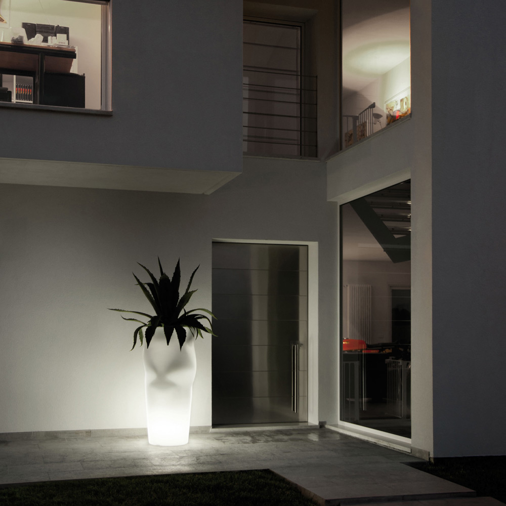 Leuchtende Außenvase aus Polyethylen mit LED-Licht Made in Italy.