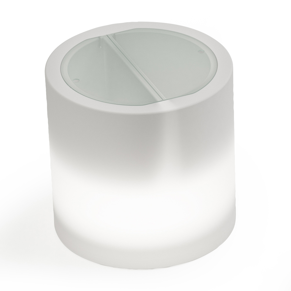 Dieser Gartentisch, der vollständig in Italien aus Polyethylen mit weißem Licht gefertigt und hergestellt wurde, ist mit einem Behälter ausgestattet, der in zwei Fächer mit einem Plexiglasdeckel unterteilt ist. Diese beiden Fächer haben leicht unterschiedliche Größen, sodass sie für unterschiedliche Zwecke verwendet werden können, von der Aufbewahrung von Lebensmitteln und Getränken bis zur Verwendung von Eis. Im letzteren Fall ist das kleinere Fach mit einem Kit zum Ablassen von überschüssigem Wasser ausgestattet, um die Frische zu bewahren.
