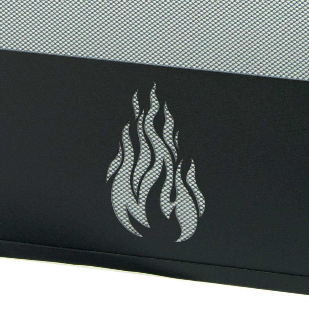 Die robuste und langlebige Metallstruktur ist mit einem Finish versehen, das sich mit schlichter Eleganz mit jeder Art von Möbeln verbindet, von klassisch bis modern. Das Design ist klar und modern, mit klaren Linien, die für einen raffinierten und minimalistischen Look sorgen, während das dekorative, stilisierte Flammenmotiv an der Unterseite einen Hauch von einzigartigem und unverwechselbarem Charakter verleiht.