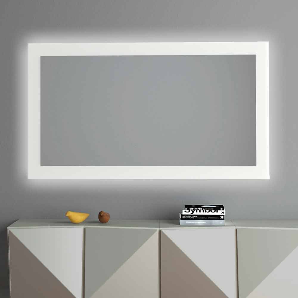 Rechteckiger Wandspiegel mit Hintergrundbeleuchtung und sandgestrahltem Rahmen Made in Italy.