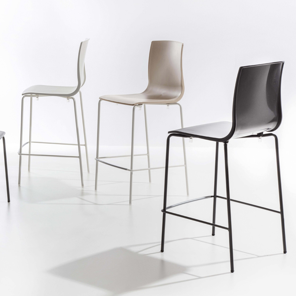 Hoher Küchenhocker aus Polypropylen und Metall, 2 Stück.