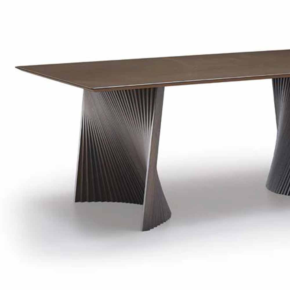 Esstisch mit Steinzeugplatte und Beinen aus Eschenholz, Luxusprodukt Made in Italy.