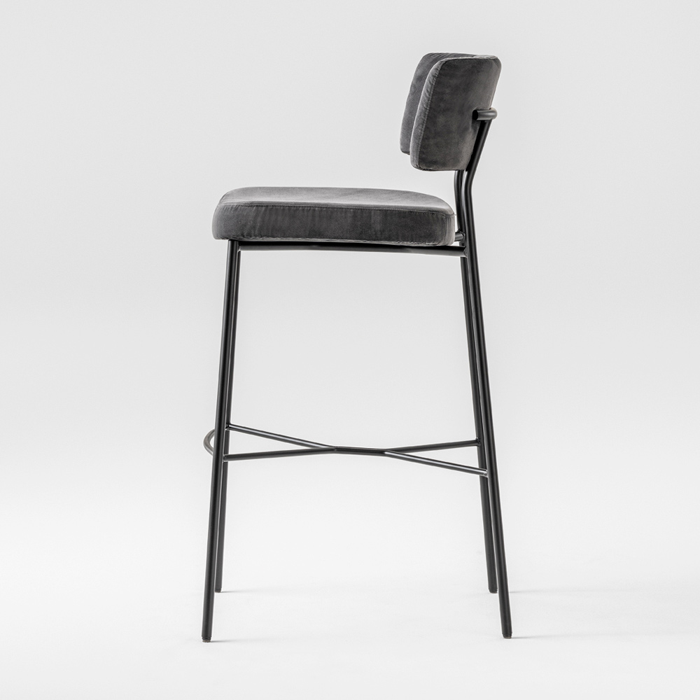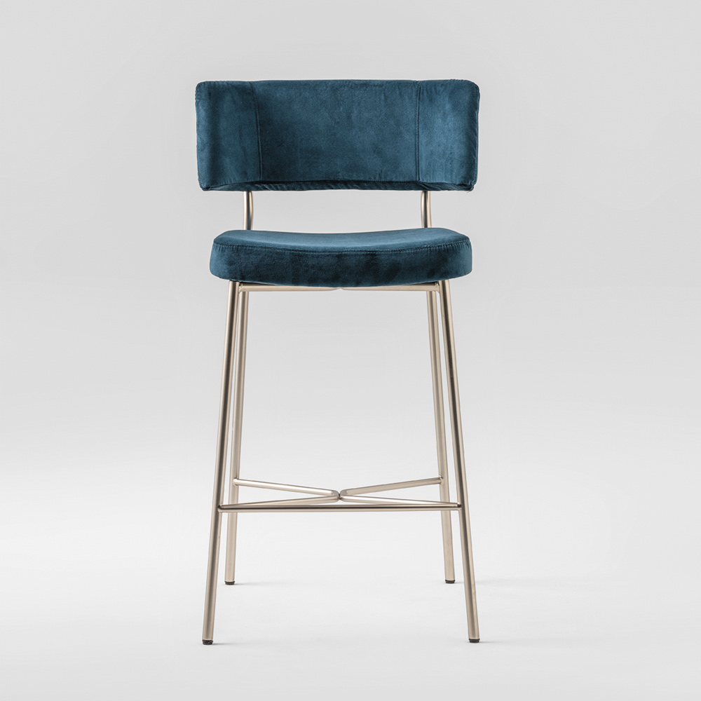 Feiner Küchenhocker aus lackiertem Metall und Samt Made in Italy.