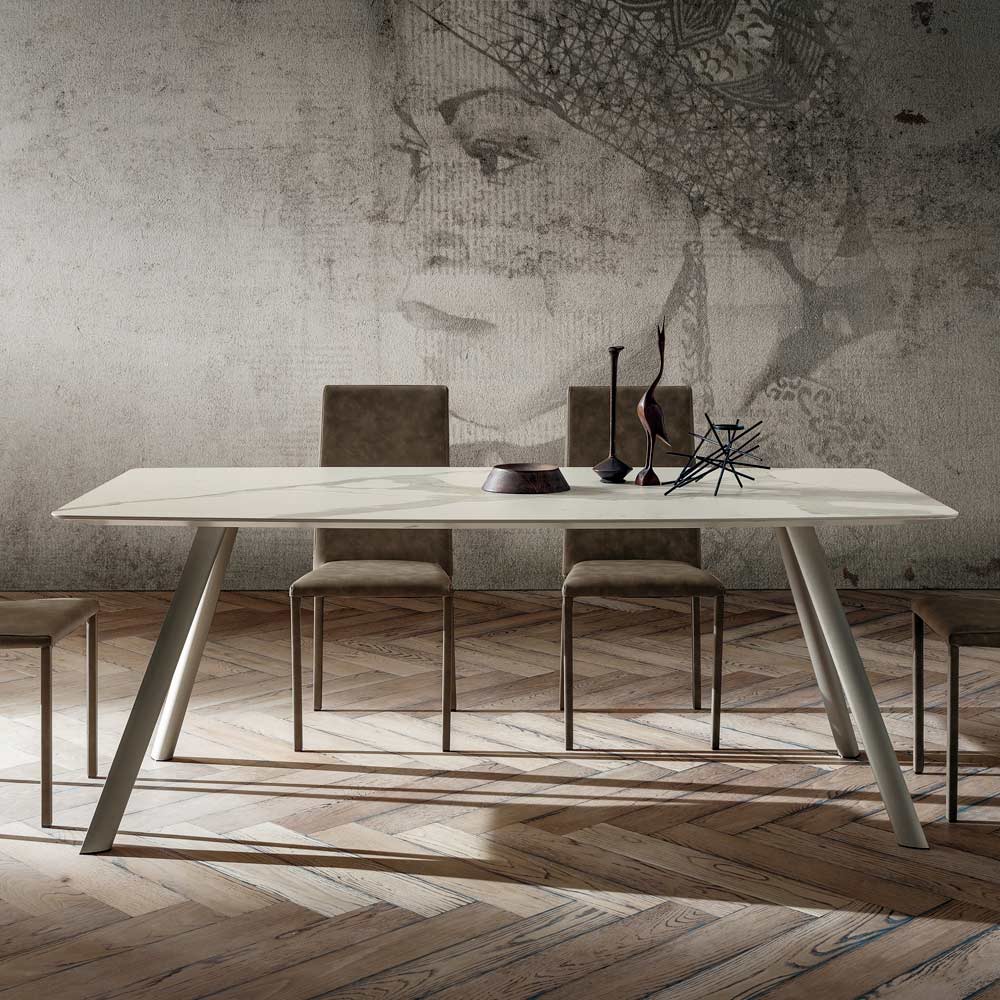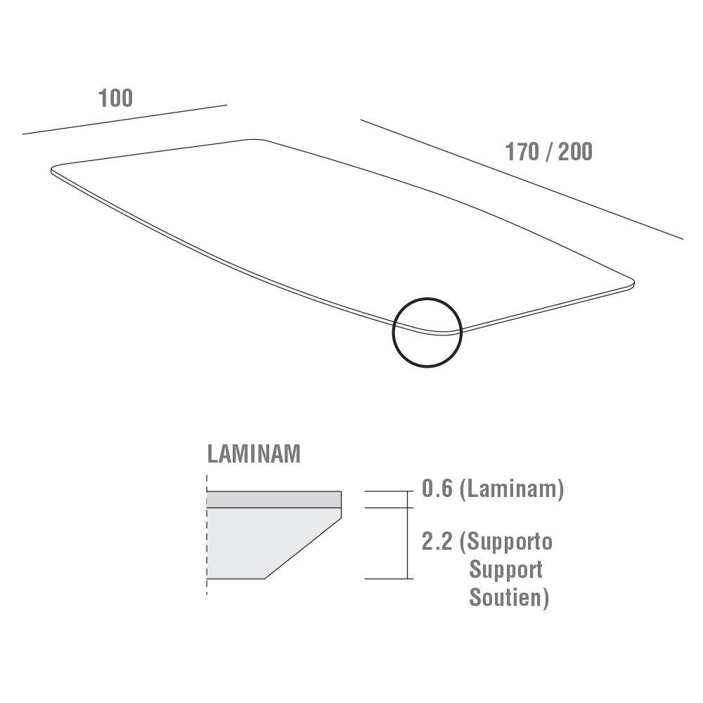 laminam (Feinsteinzeug) Platte auf eine MDF-Trägerfläche geklebt. Aus der Begegnung zwischen der Eleganz von Laminam-Keramik und der exklusiven und edlen Note, die durch das wunderbare Finish der Beine verliehen wird, entsteht eine einzigartige Einrichtungslösung, die sich durch eine