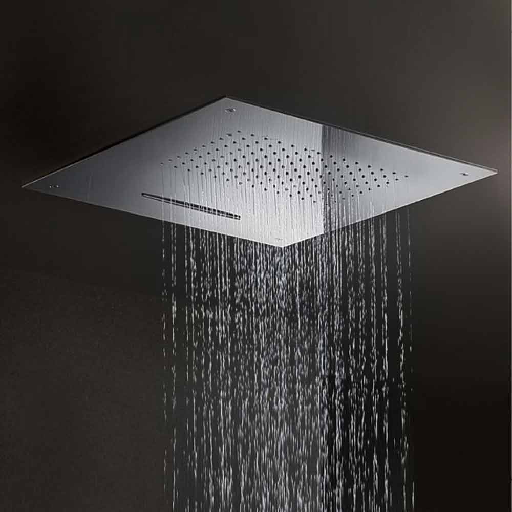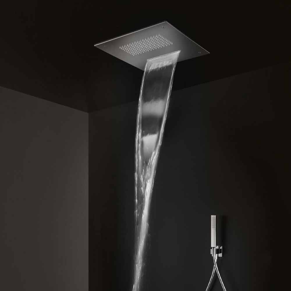 Moderner quadratischer Duschkopf aus Edelstahl mit Doppelstrahl, Qualitätsprodukt „Made in Italy“.