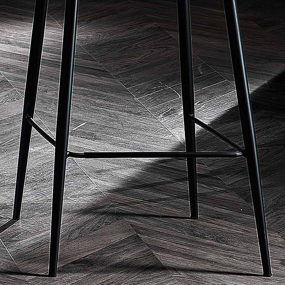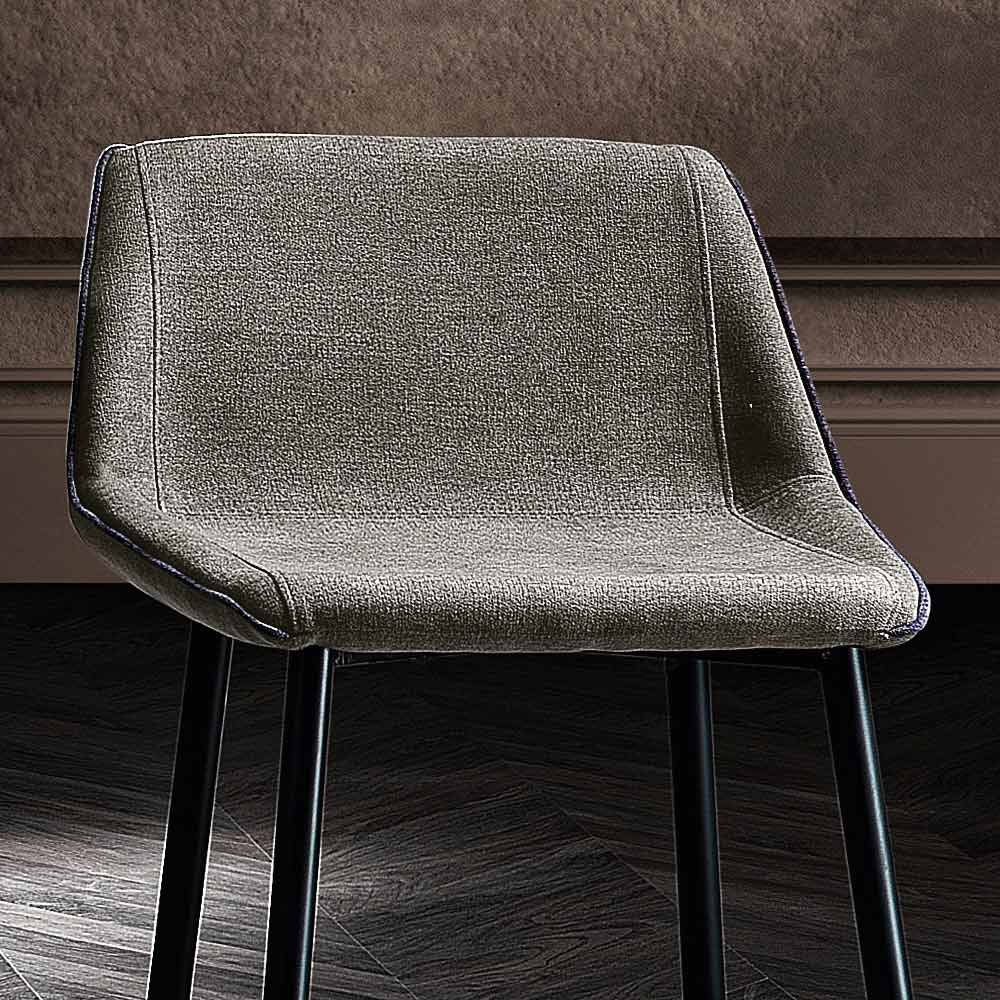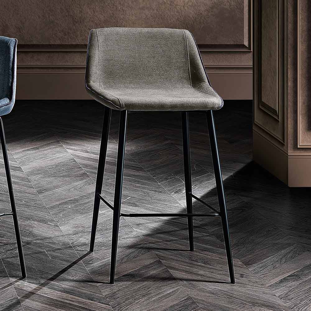 Küchenhocker aus Stoff mit Rundrohrstruktur aus Metall (Stärke 16 mm) mit mattschwarzer Oberfläche, vollständig in Italien hergestellt. Ein Möbelstück mit eleganter Ästhetik und starker visueller Wirkung, das einen einladenden und bequemen Sitz garantiert und gleichzeitig die Atmosphäre des Esszimmers oder der Küche bereichert. Das Design ist somit funktional und zeitlos, geeignet für diejenigen, die mit zarten Nuancen einen einladenden Wohnraum schaffen möchten.