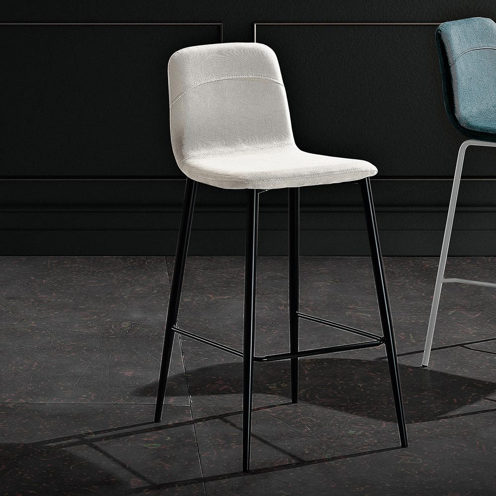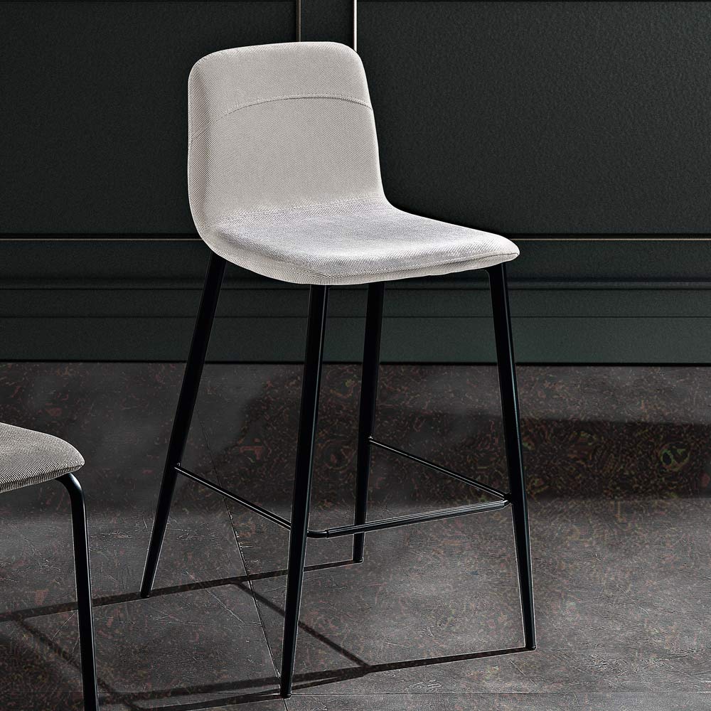 Küchenhocker mit stoffbezogener Sitzfläche und Metallgestell mit Rundrohr (Durchmesser 16 mm) in mattem Anthrazit RAL 7021 komplett mit praktischer Fußstütze, hergestellt in Italien.