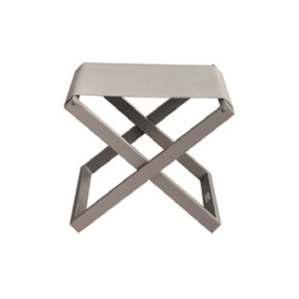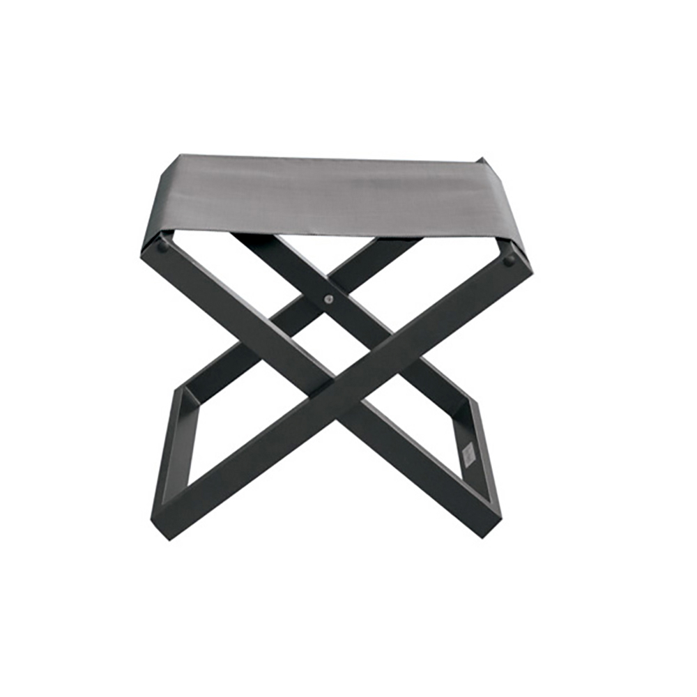 Niedriger Hocker für den Außenbereich mit Struktur aus pulverbeschichtetem Aluminium und Textilene.