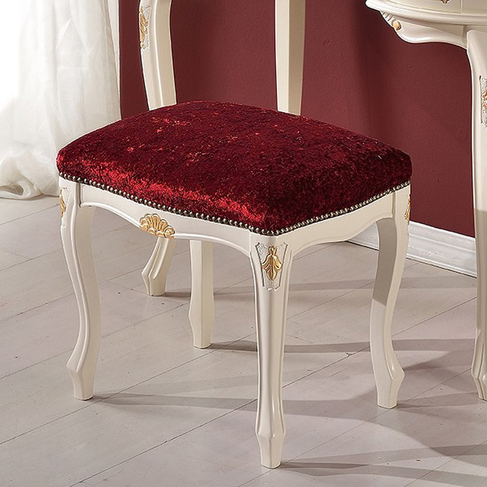 Hocker im klassischen Stil aus Walnussholz und Stoff Made in Italy.