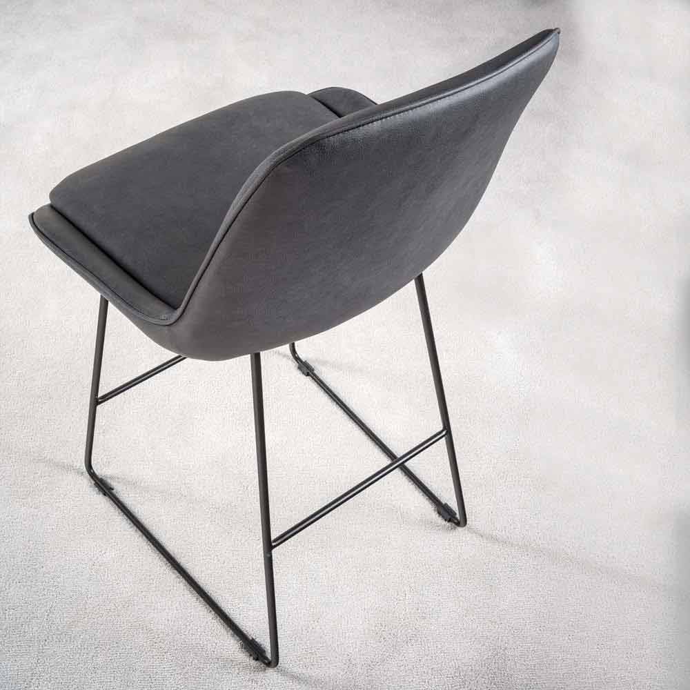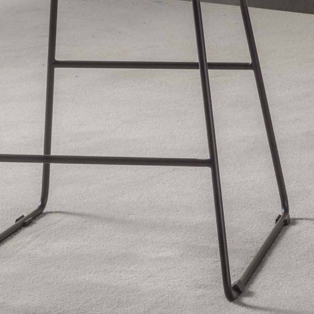 Design Hocker mit einer Schlittenstruktur aus Metall und Sitzfläche aus Kunstleder