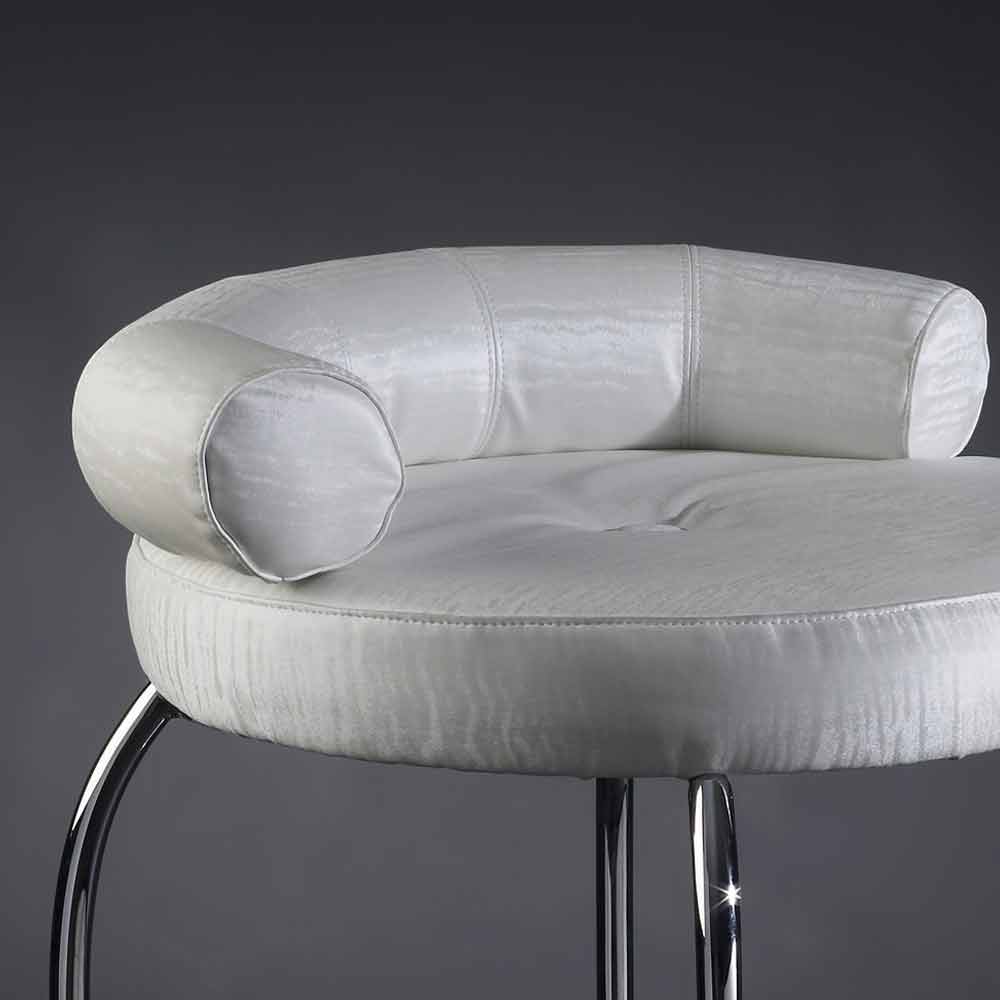 Hoher Hocker aus Stahl mit Sitz aus edlem Stoff Made in Italy.