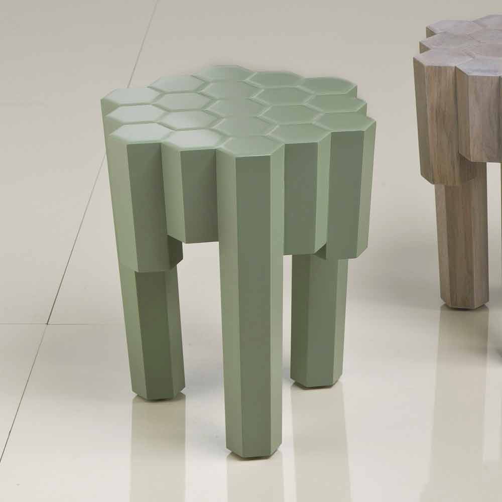 Hocker / Couchtisch aus Holz, bestehend aus Sechsecken. Tische, die sich durch die Fülle von Massivholz auszeichnen, und ein Waben-Waben-Design, das dank der sechs Seiten für die Zusammenstellung und Zusammenstellung mehrerer Systeme geeignet ist.