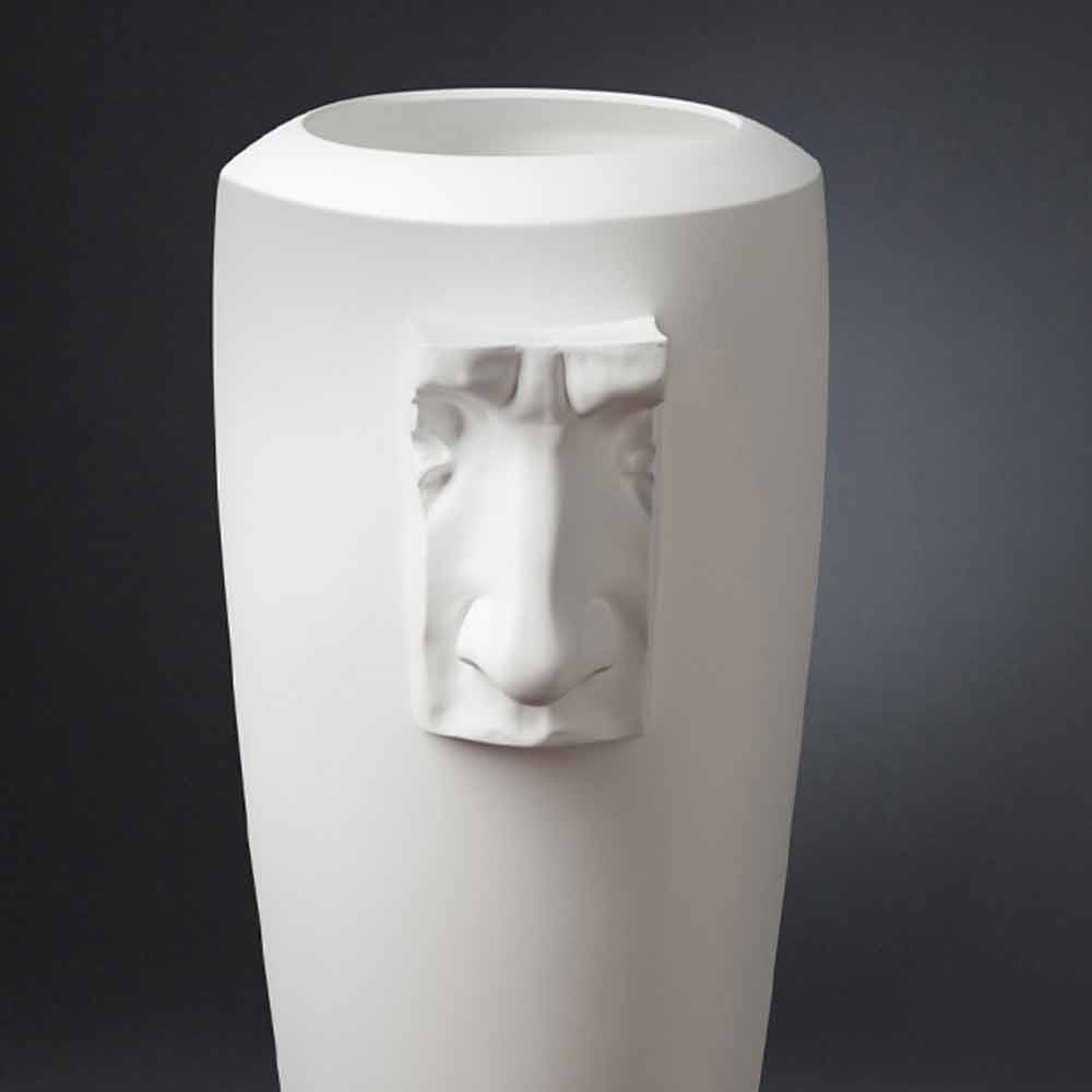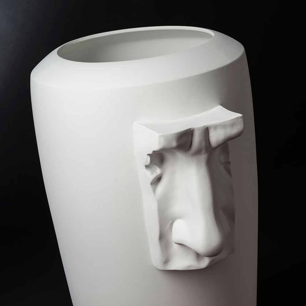 Originelle dekorative Vase für den Innenbereich aus undurchsichtiger weißer Keramik, handgefertigt durch eine 100% Made in Italy-Produktion . Eine völlig revolutionäre Einrichtungsidee, die wesentliche Designs mit Elementen aus Kunstwerken der italienischen Kultur kombiniert, um ein exklusives Dekorationselement zu schaffen, das den Stil jeder modernen Umgebung revolutionieren kann und einen Hauch von Originalität und eine äußerst kreative Ästhetik mit sich bringt. . Die Handwerkskunst unterstreicht ihren Wert und ist geprägt von Präzision, Leidenschaft und Liebe zur Tradition. Das Ergebnis ist eine Idee von exklusiven Möbeln, die sich ideal für die unterschiedlichsten Umgebungen eignen, von der Wohnungseinrichtung bis hin zu Hotels, Restaurants, Objektbereichen, Spas, aber auch als Rahmen für Veranstaltungen und Hochzeiten.