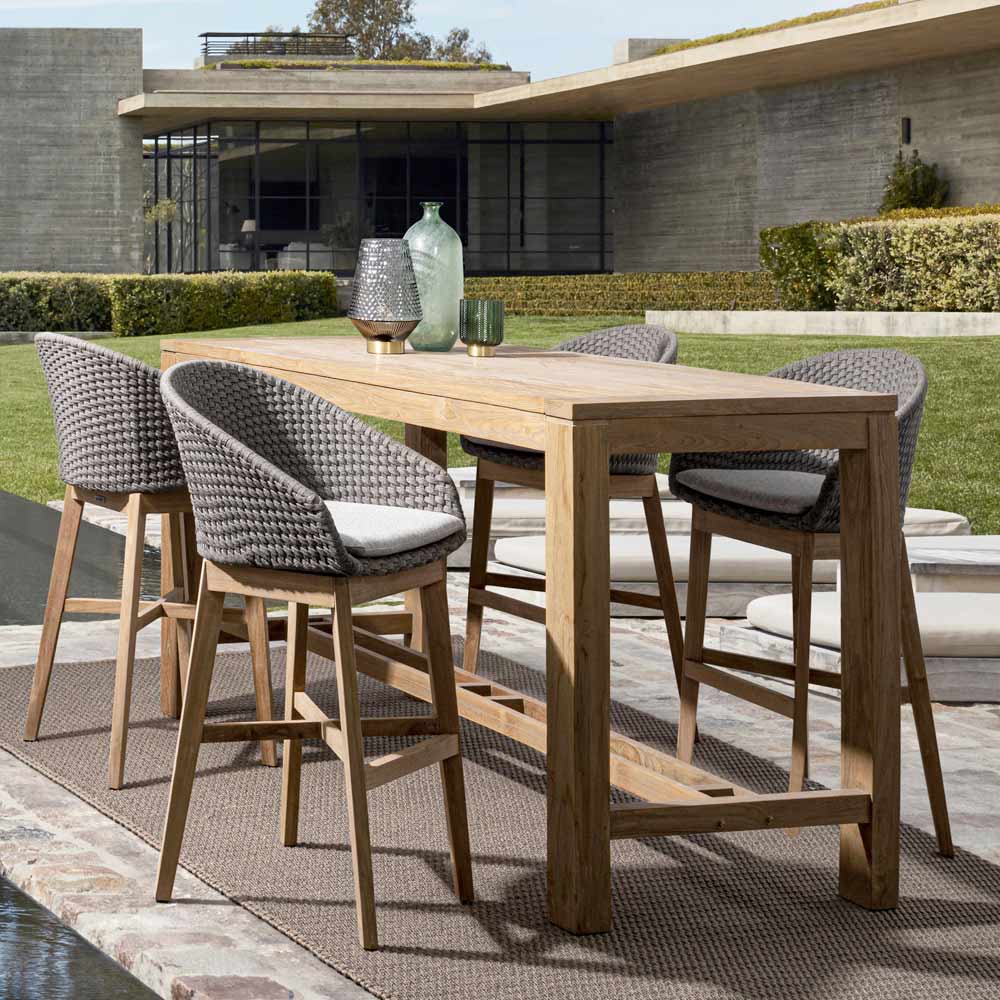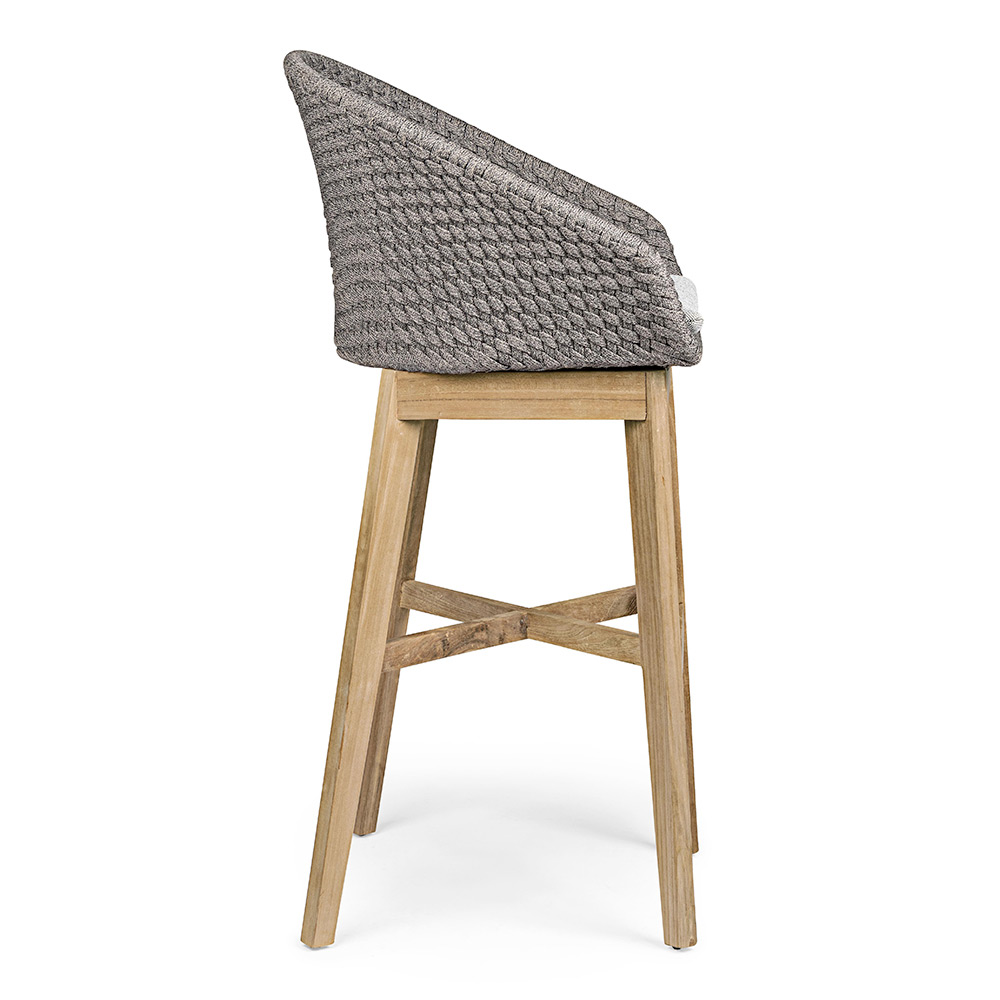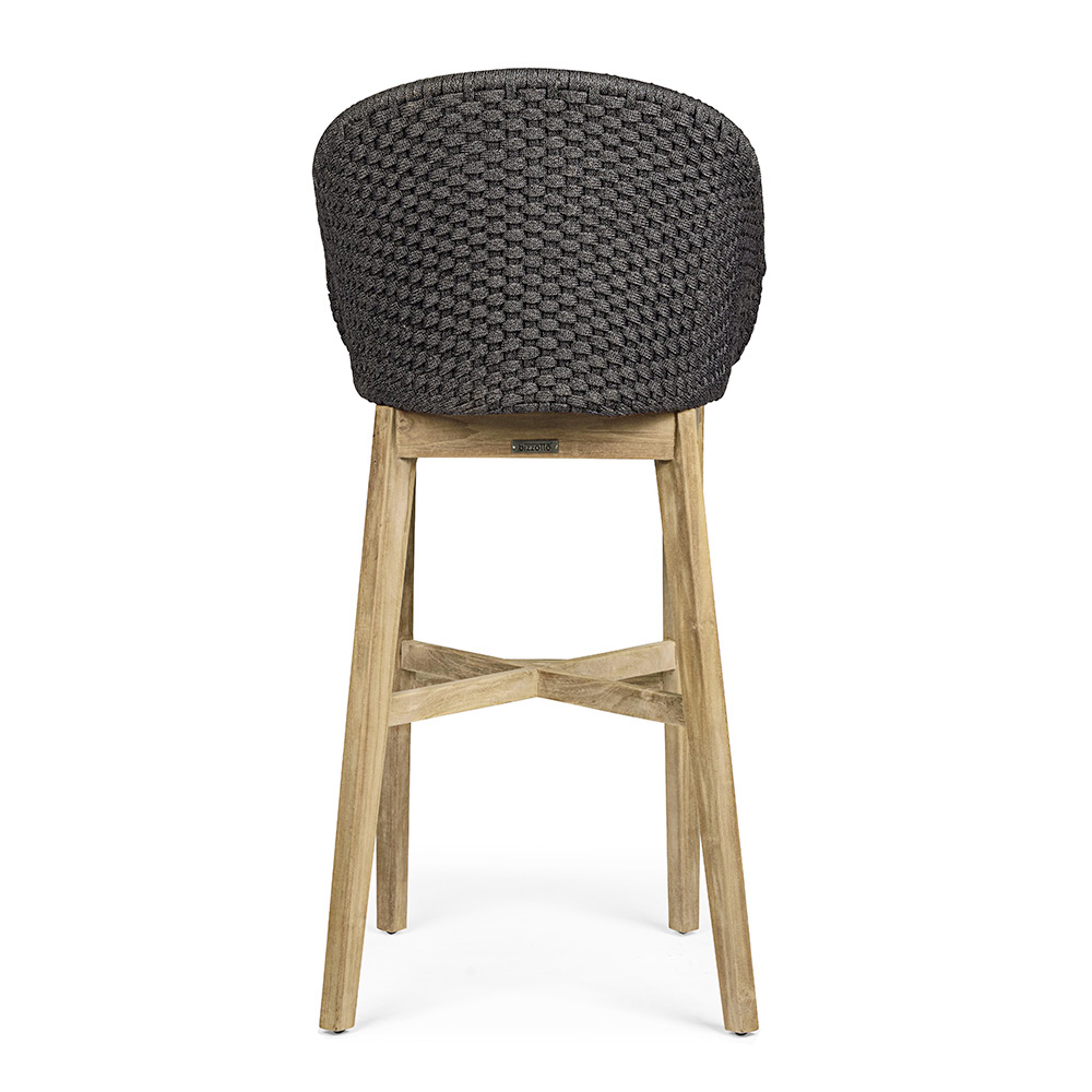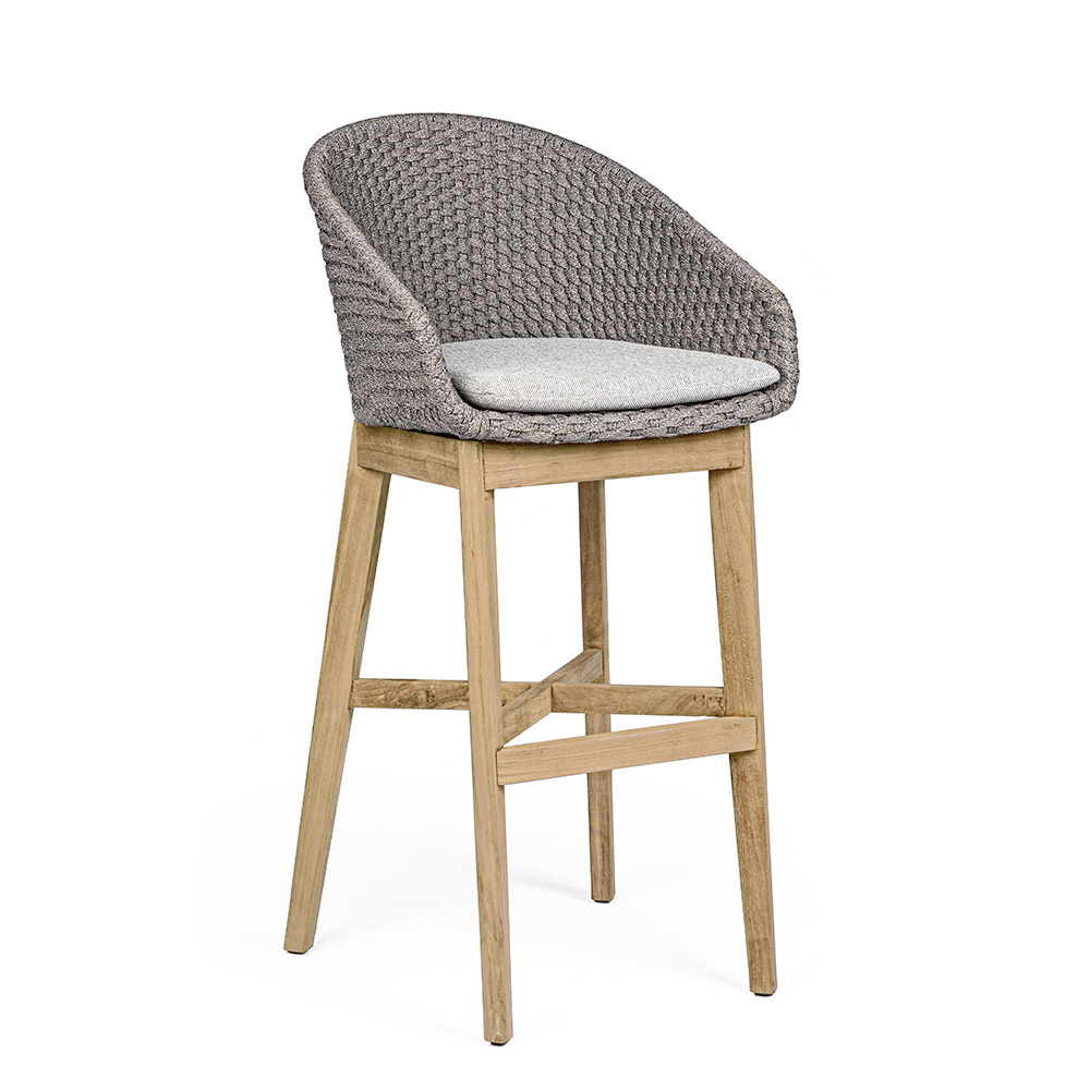 Hoher Außenhocker aus Seil- und Teakholz, Homemotion, 2 Stück - Anitha