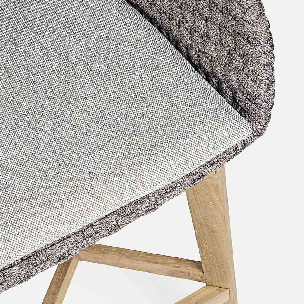 Hochwertiger Außenhocker aus Teak und Seil mit abnehmbarem Stoffkissen, 2 Stück.