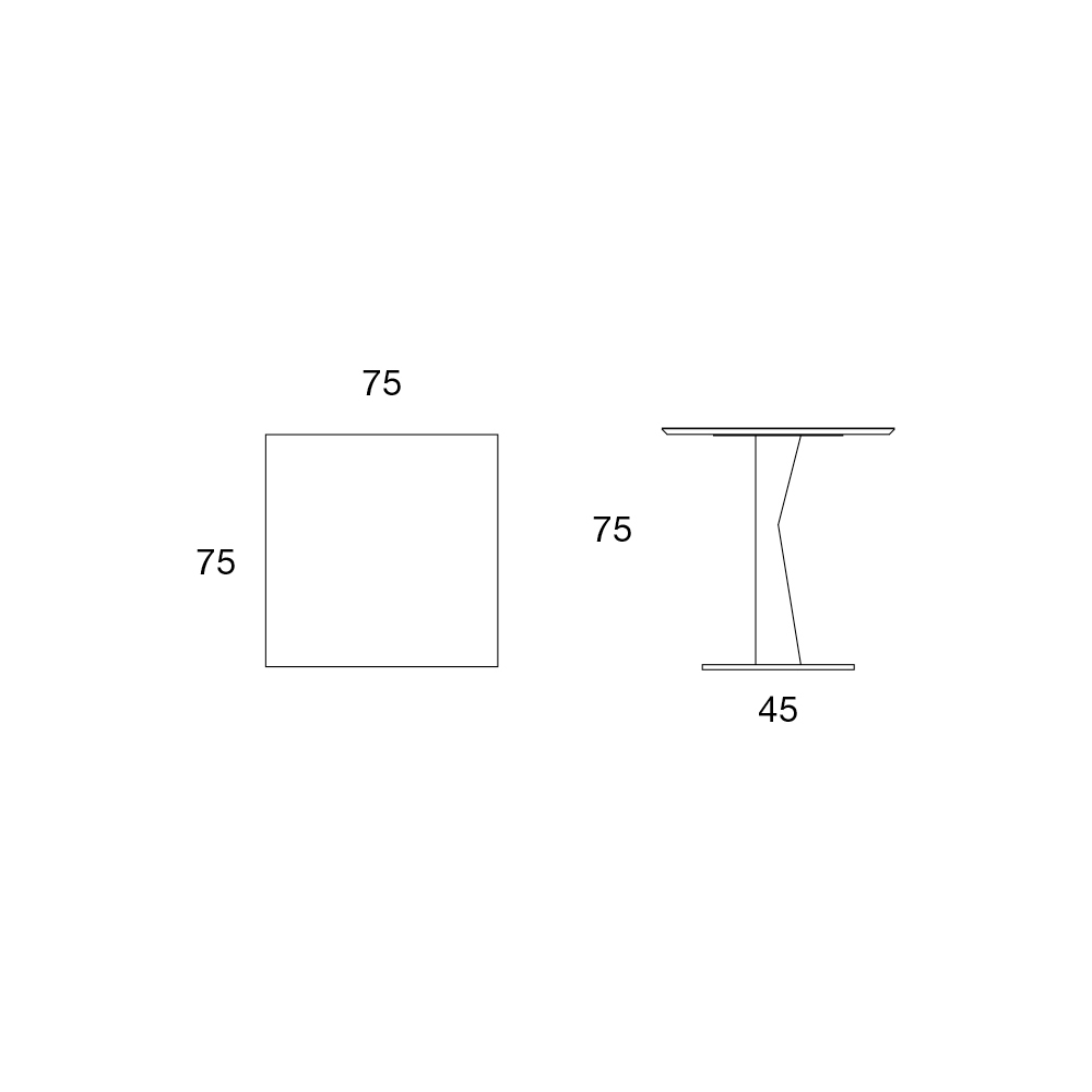 Quadratischer Tisch aus matter Keramik und geneigtem Metallfuß, hergestellt in Italien.