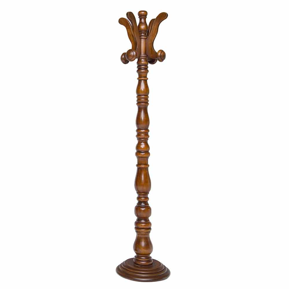 Garderobenständer aus Buchenholz mit rundem MDF-Sockel mit einfachen und geschwungenen Linien, geeignet für elegante und raffinierte Umgebungen.