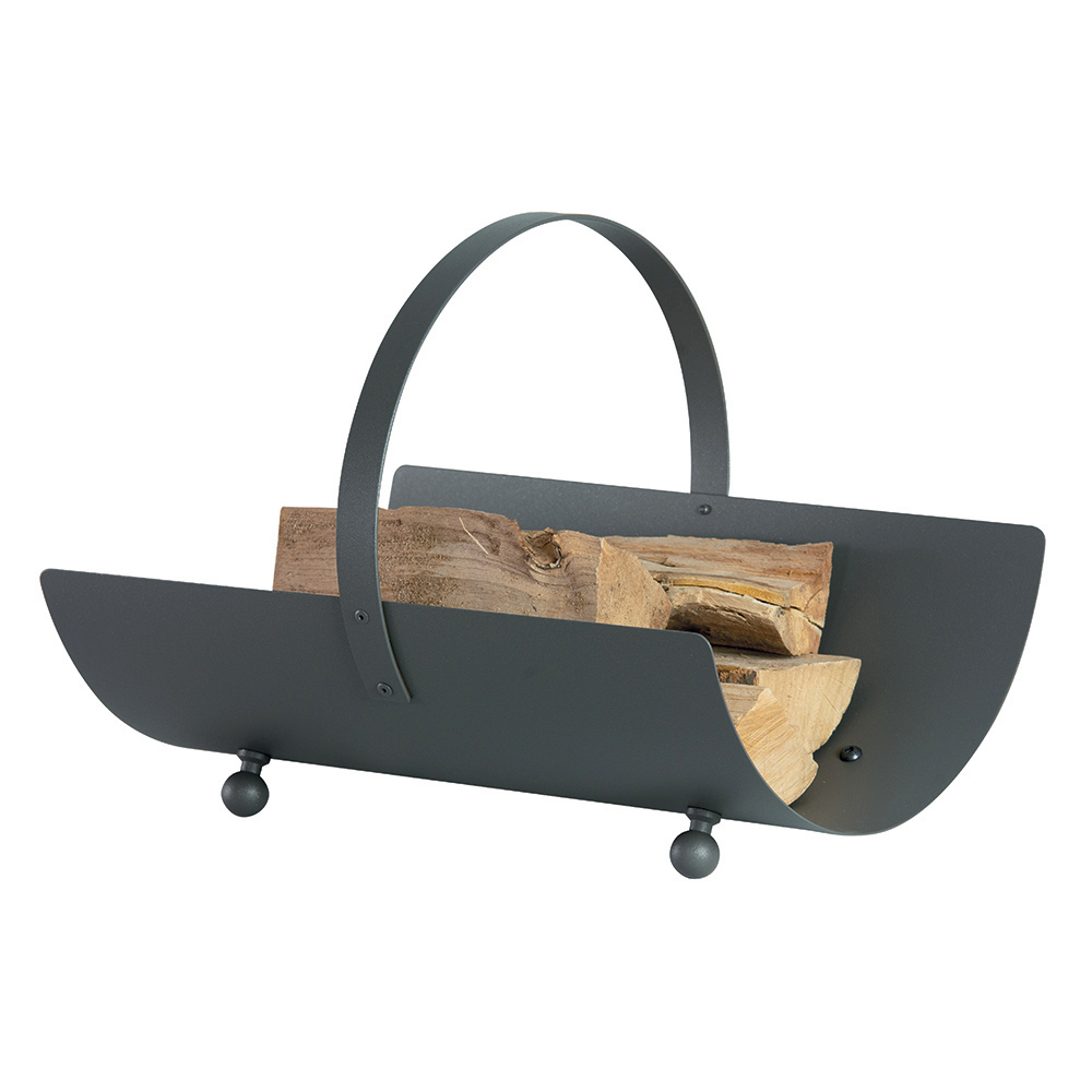 Seine niedrige und längliche Form ist darauf ausgelegt, eine großzügige Menge Holz aufzunehmen und es ordentlich und griffbereit zu halten. Dieser Holzscheithalter ist nicht nur funktional, sondern auch ein Designstück, das Aufmerksamkeit erregt und die gemütliche Atmosphäre Ihres Wohnraums ergänzt.