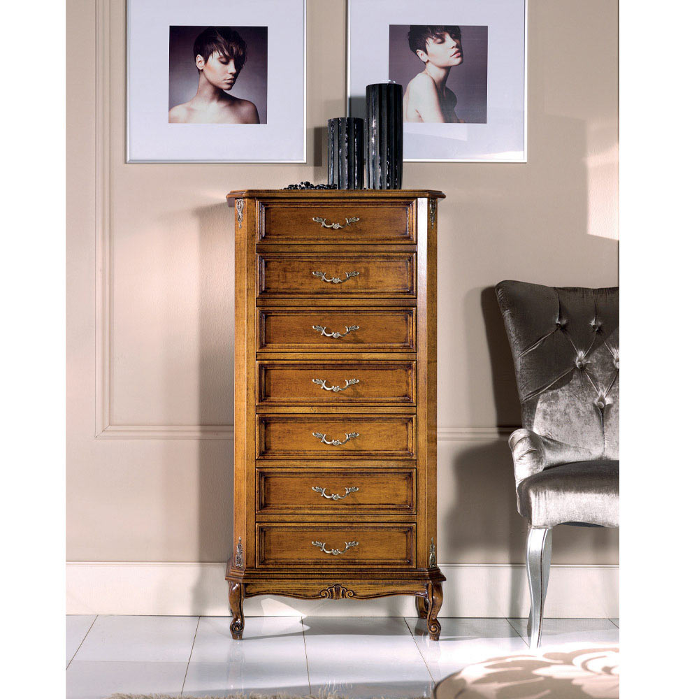 Kommode im klassischen Stil mit 7 oder 5 Schubladen aus Holz Made in Italy.