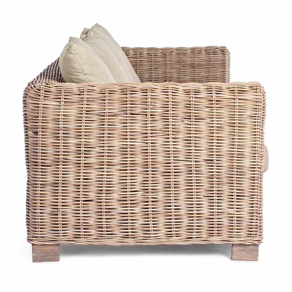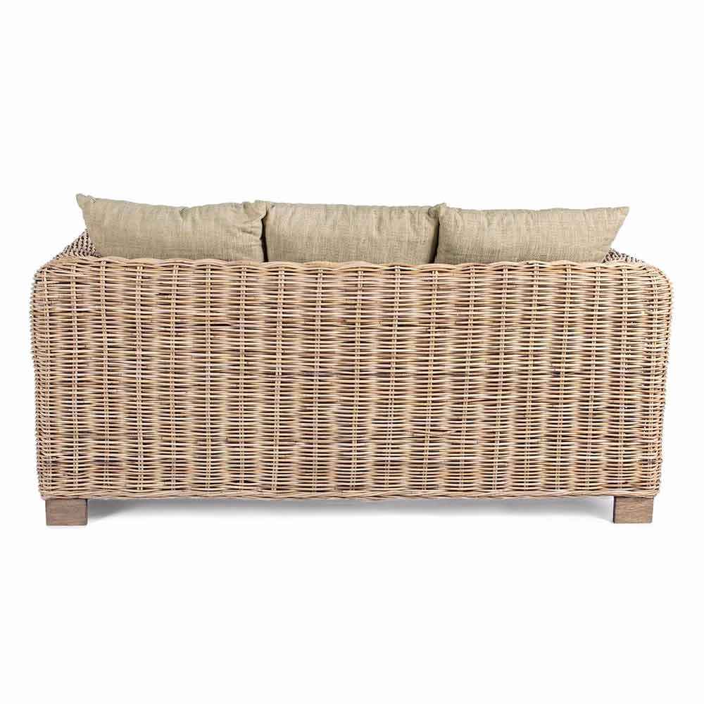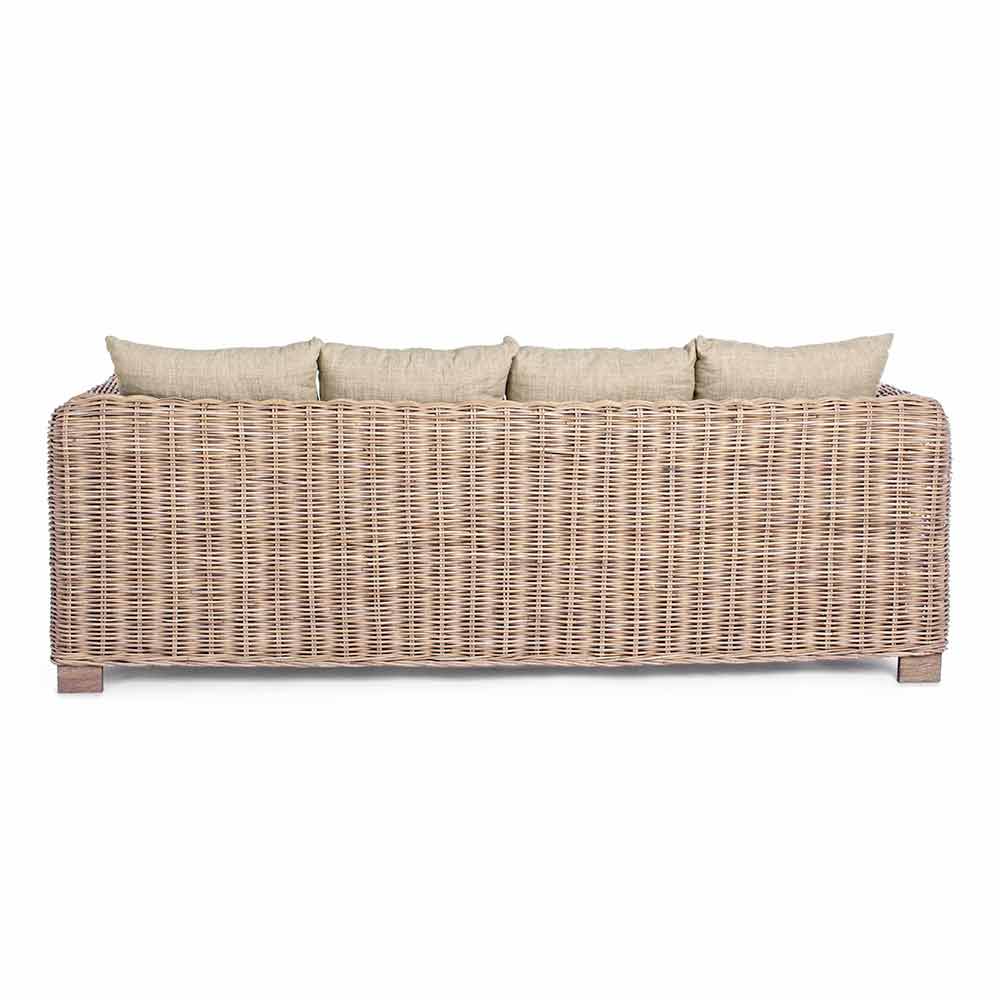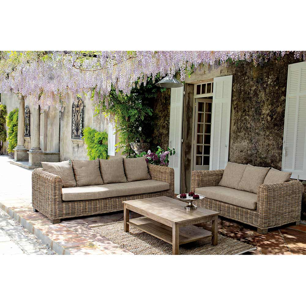 Gartensofa im ethnischen Stil für den Innen- und Außenbereich aus Rattan und Mangoholz.