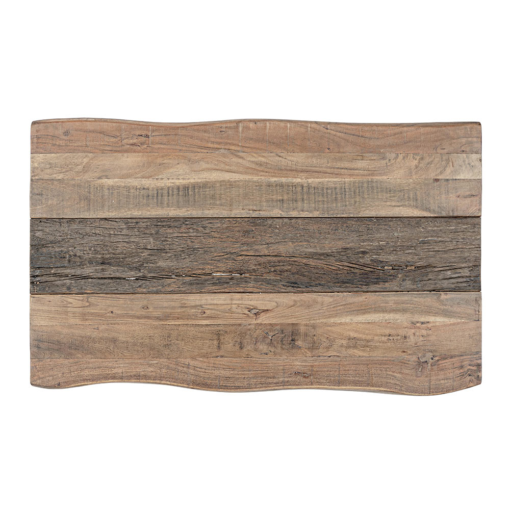 Das minimalistische Industriedesign zeichnet sich durch den zentralen Einsatz aus recyceltem Holz mit schützendem Acryl-Finish aus.