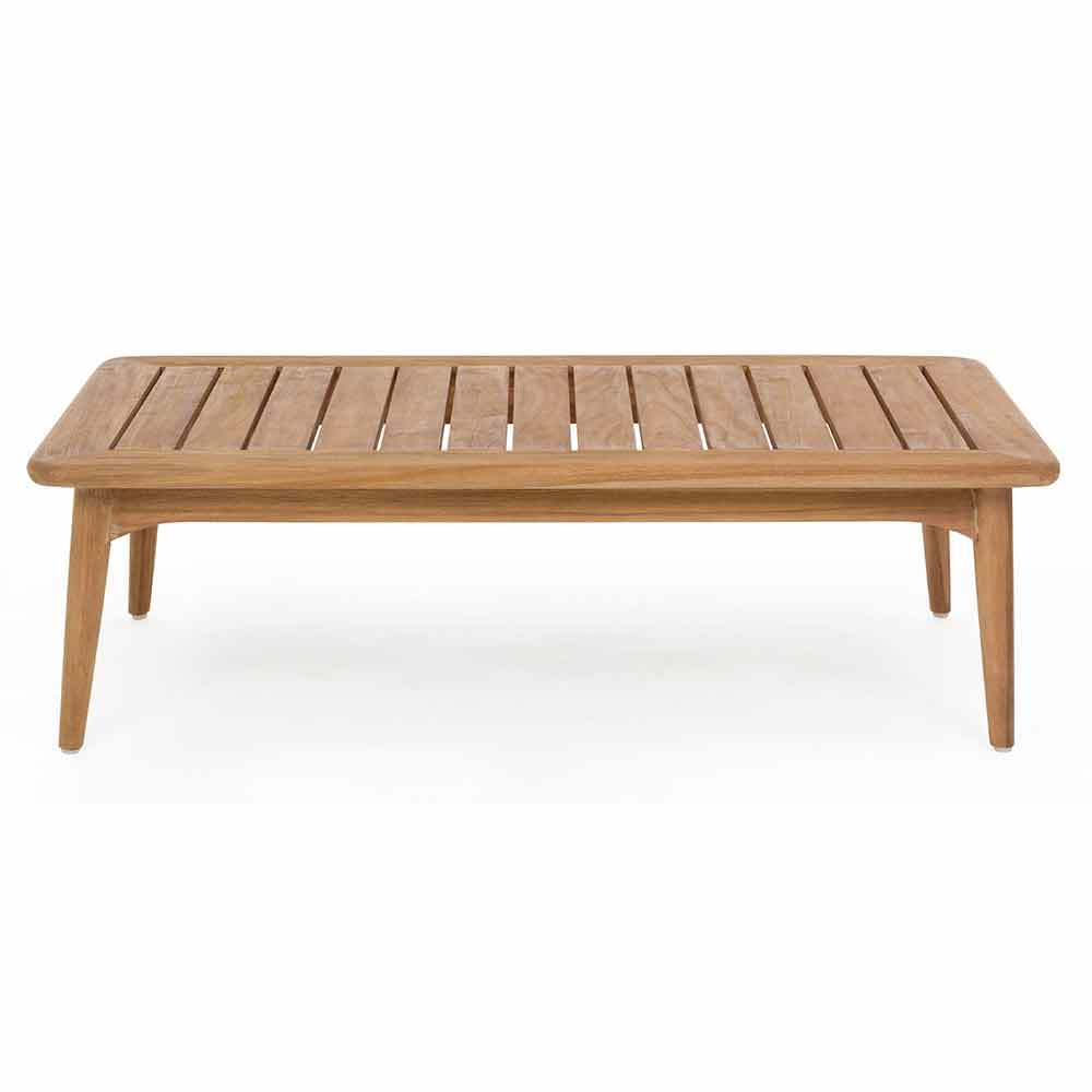 Gartentisch im modernen Design aus natürlichem Teakholz.