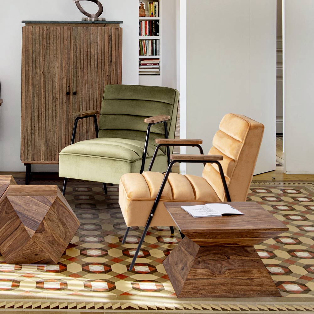 Couchtisch für das Wohnzimmer mit pyramidenförmigem Design aus Sheeshamholz.