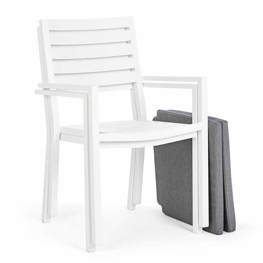 Stapelbarer Gartenstuhl aus lackiertem Aluminium mit Kissen, 4 Stück.