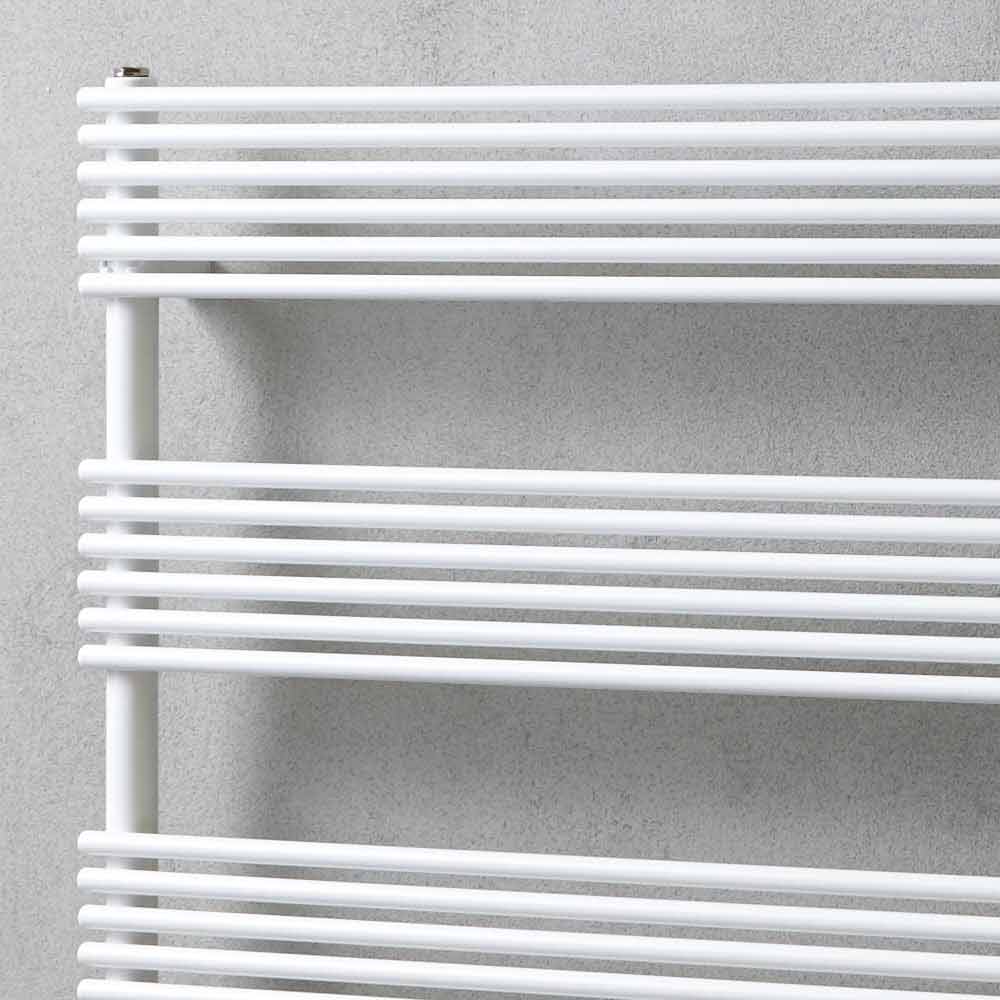 Dieser elektrische Handtuchwärmer hat ein sehr praktisches und funktionales horizontales Design , das aus horizontalen runden Rohren besteht, die leicht an jede Art von Stil und Umgebung angepasst werden können.
