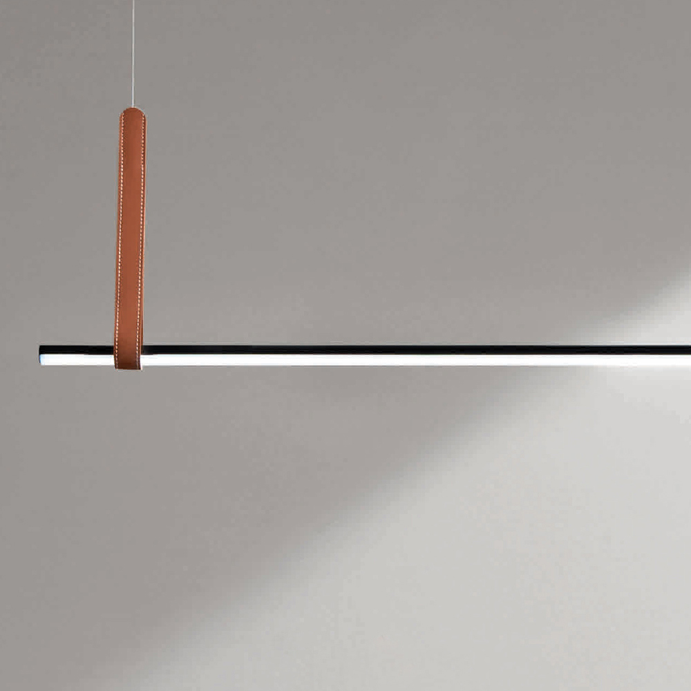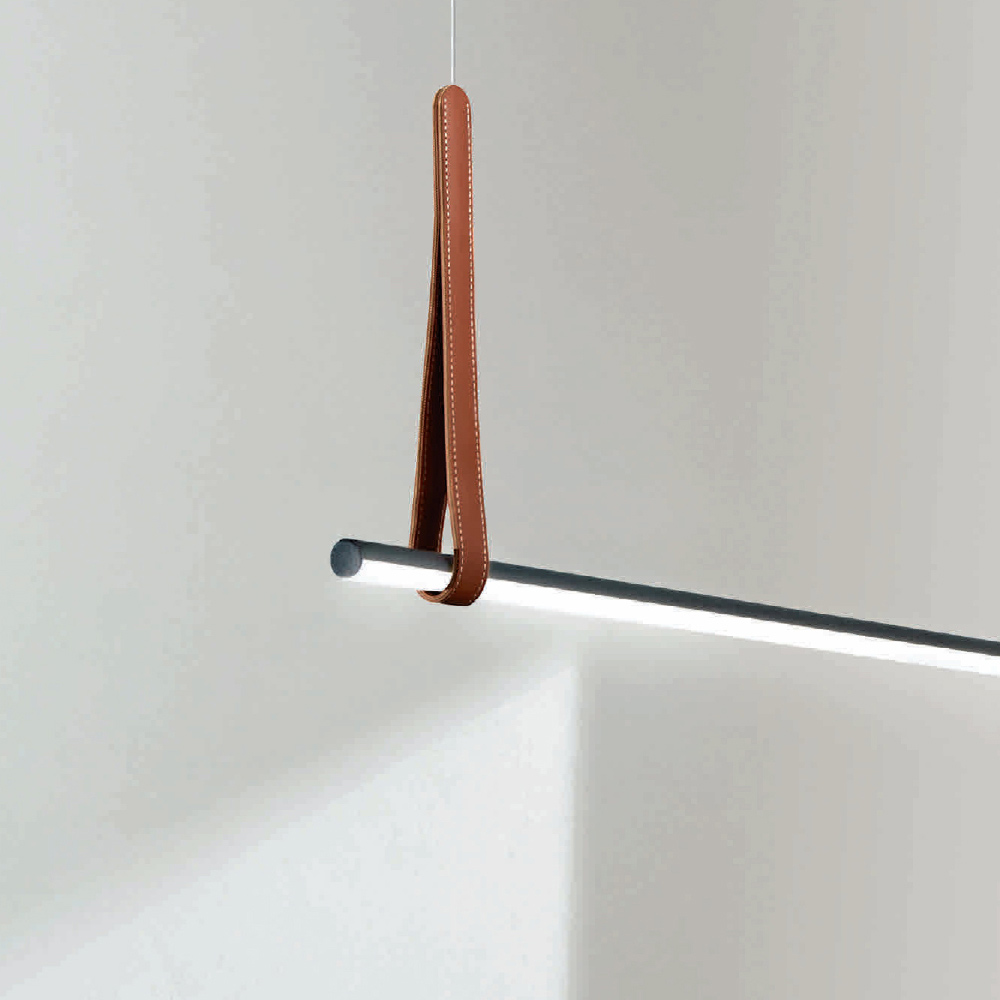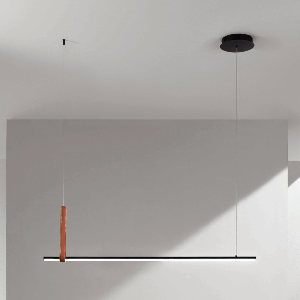 Element aus lederfarbenem Kunstleder mit längenverstellbaren