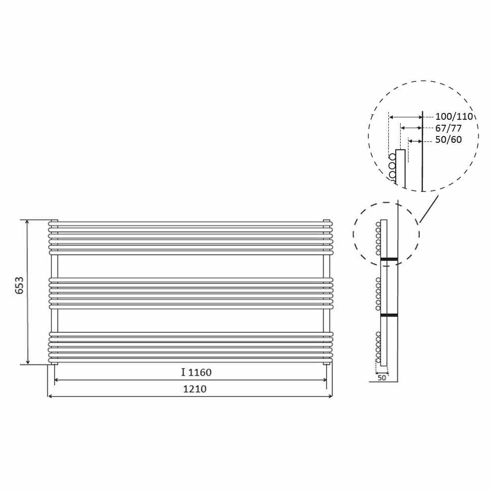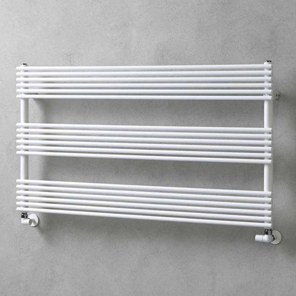 Dieser Handtuchwärmer hat ein sehr praktisches und funktionales horizontales Design , das aus horizontalen runden Rohren besteht, die leicht an jede Art von Stil und Umgebung angepasst werden können.