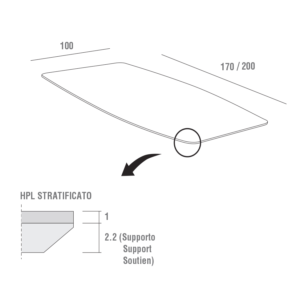 Küchentisch mit geschichteter HPL-Platte (Dicke 10 mm), die in Tonnenform geschichtet ist und auf einer MDF-Platte und mit Epoxidpulvern in Anthrazit lackierten Metallbeinen getragen wird. Dieses in Italien aus hochwertigen Rohstoffen hergestellte Möbelstück bietet eine hervorragende Beständigkeit gegen Chemikalien, Abrieb und Kratzer und gewährleistet gleichzeitig eine solide und robuste Oberfläche , die ihre ästhetischen Eigenschaften im Laufe der Zeit unverändert behält. Darüber hinaus ermöglicht die große Auswahl an vorgeschlagenen Oberflächen, die von Holzoptik über Stein bis hin zu einer Marmorstruktur reichen, unterschiedliche Lösungen zu bieten, die den Geschmack und die Bedürfnisse auf exklusive und raffinierte Weise erfüllen können. Der Metallfuß hingegen verleiht ein originelles und kreatives Element und vervollständigt das Aussehen des Tisches mit einem Hauch von Modernität.