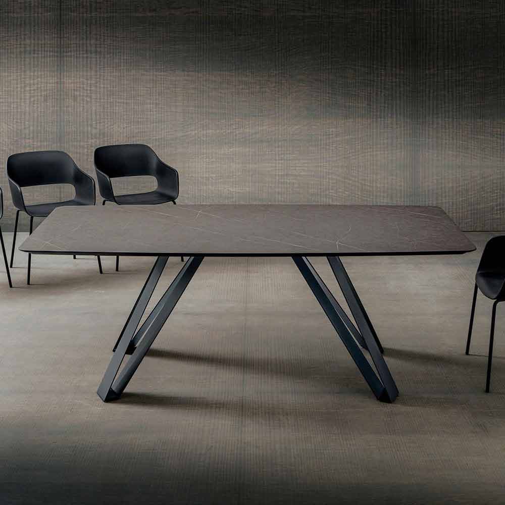 Esstisch aus geschichtetem HPL und anthrazitfarbenem Metall Made in Italy, hohe Qualität.
