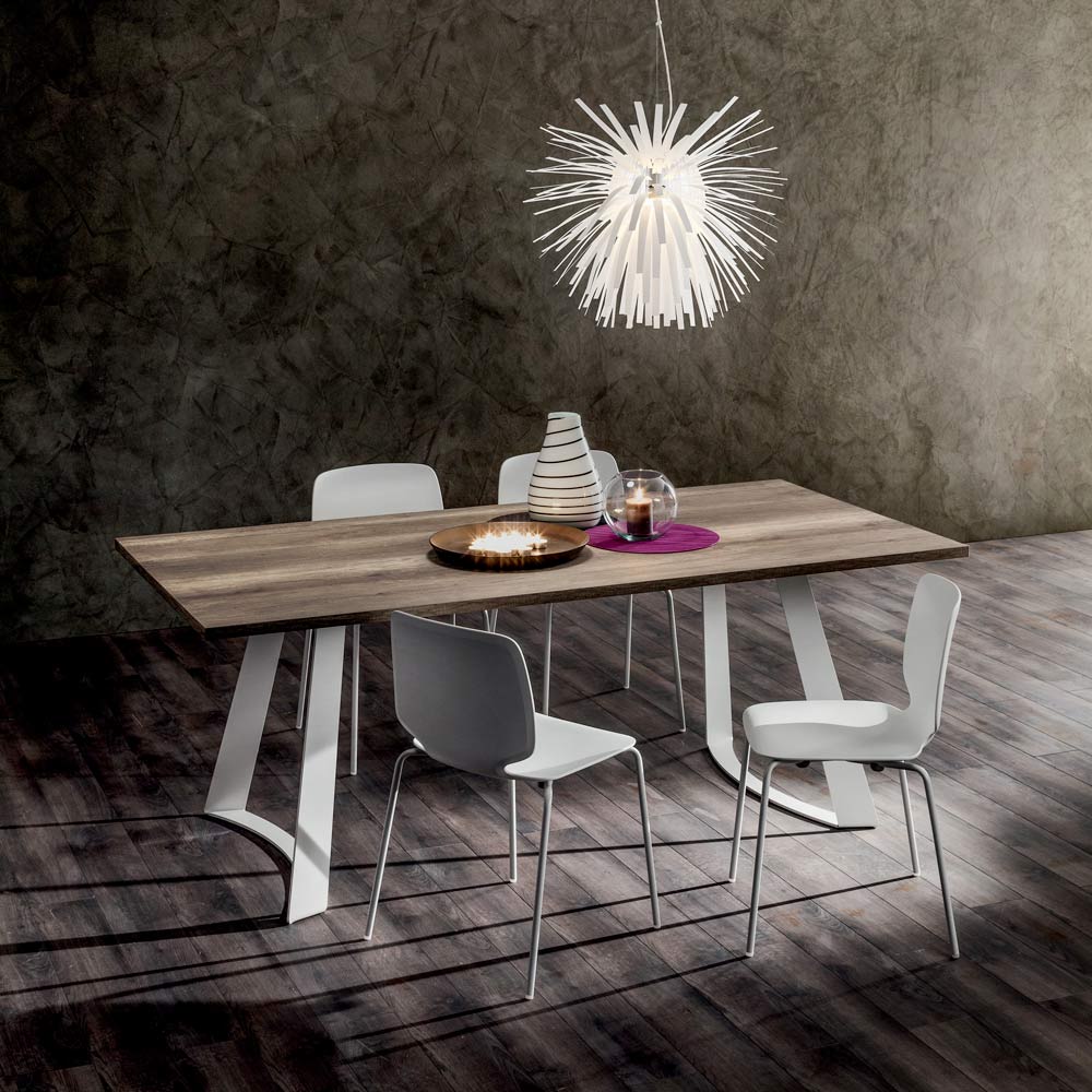Luxus-Küchentisch mit HPL-Platte und Metallgestell Made in Italy.