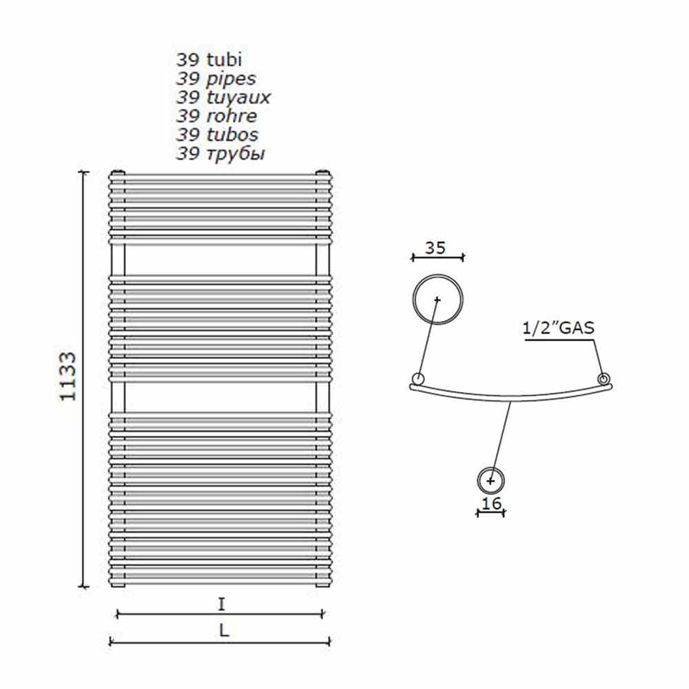 Hydraulischer Badhandtuchwärmer mit vertikalem Design aus Stahl 1013 W - Griffin