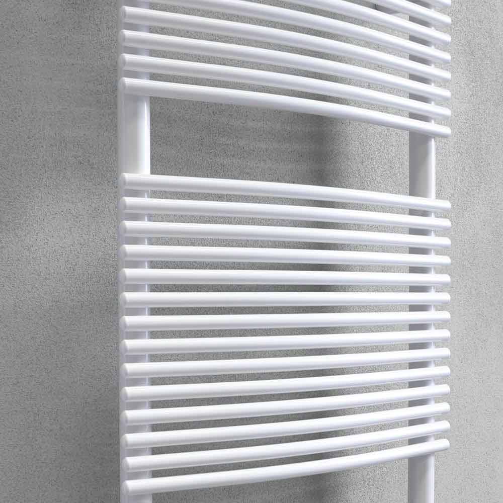 Dieser Handtuchwärmer besteht aus vertikalen Rundrohren mit einem Durchmesser von 35 mm und horizontalen Rundrohren mit einem Durchmesser von 16 mm, die gekrümmt sind. Das endgültige Design ist elegant und ungewöhnlich und lässt sich leicht an jeden Stil anpassen.