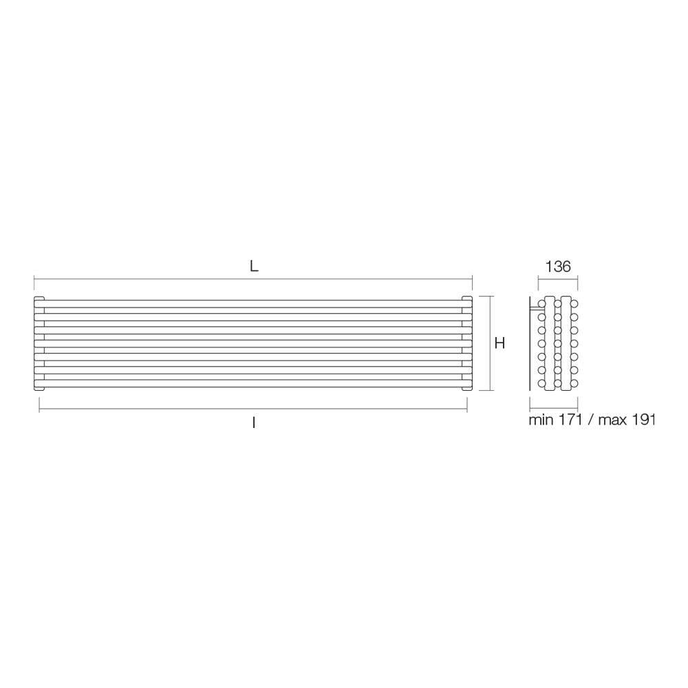 einer dreifachen Reihe horizontaler Elemente mit einem Durchmesser von 2,5 cm, die an