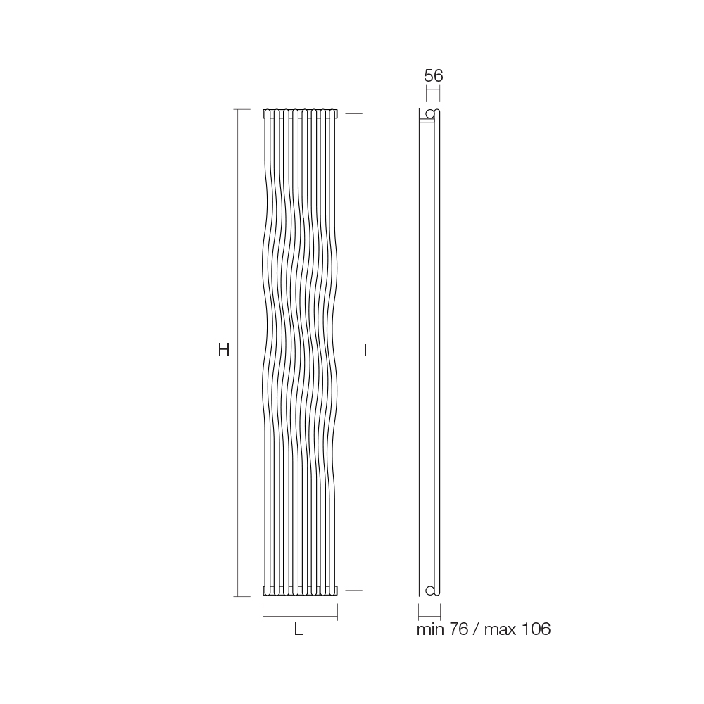 einer Reihe gebogener vertikaler Elemente mit einem Durchmesser von 2,2 cm, die an