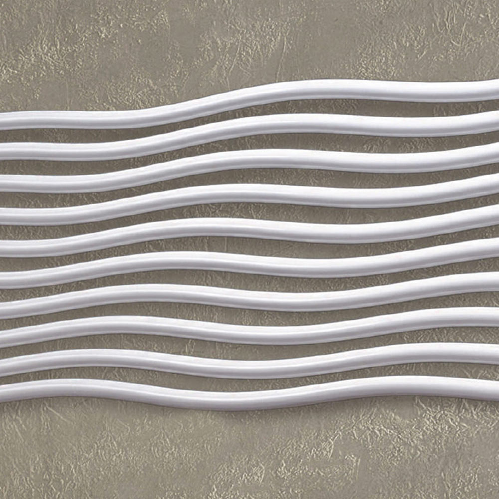 Hydraulischer Heizkörper aus Kohlenstoffstahl mit reinweißer Oberfläche, bestehend aus einer Reihe gebogener horizontaler Elemente mit einem Durchmesser von 2,2 cm, die an vertikale Verteiler mit einem Durchmesser von 3,5 cm geschweißt sind, vollständig in Italien hergestellt, inklusive Wandbefestigungssatz, Entlüftungsventil und Blindstopfen .