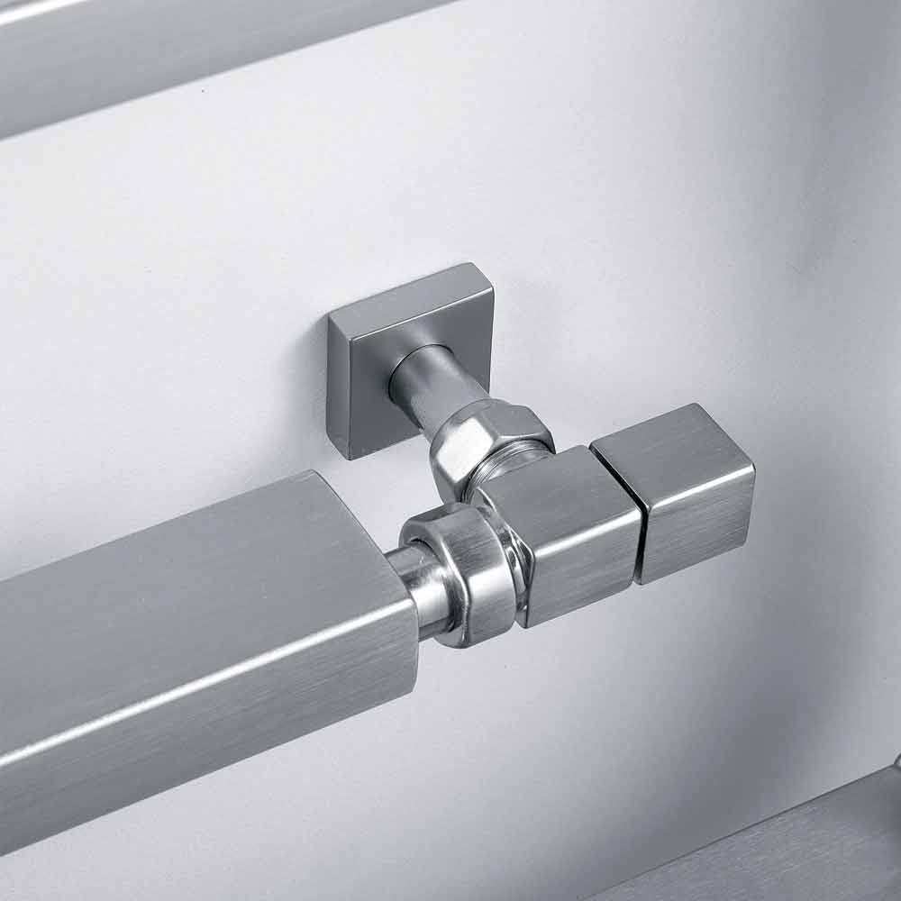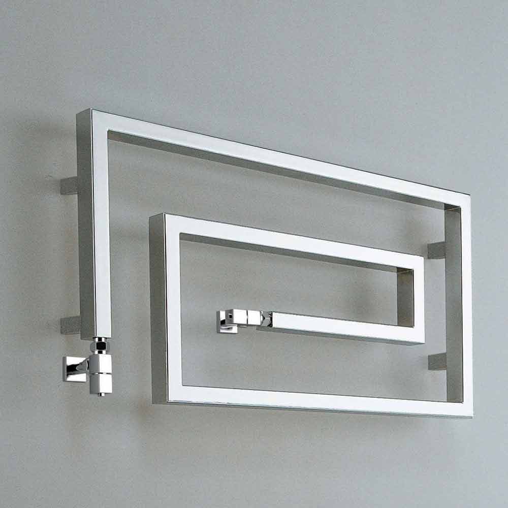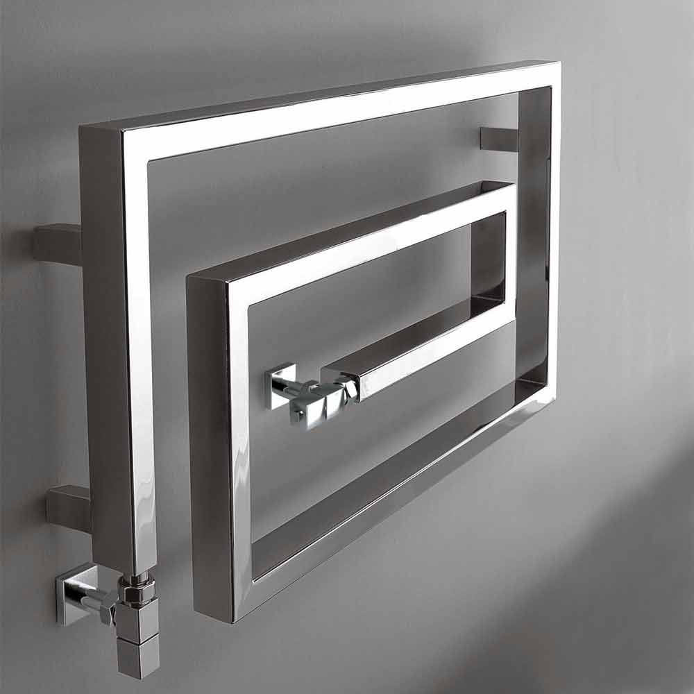 Heizkörper aus Chromstahl, in der hydraulischen Ausführung. Eine Kollektion mit starkem grafischen Charakter. Form, Material, Funktion und Technologie schaffen nicht mehr nur einfache Handtuchwärmer, sondern echte Einrichtungselemente.