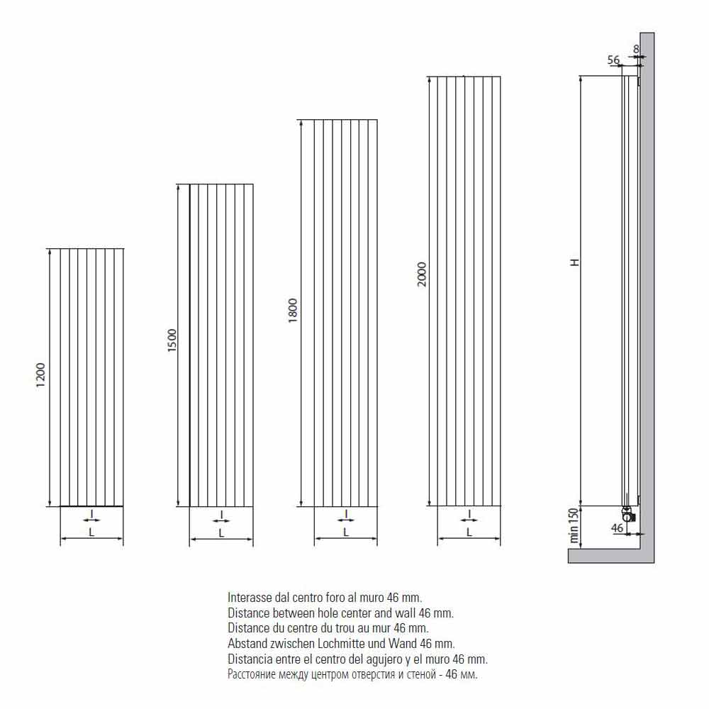 Erhältlich in verschiedenen Größen *:- H 1200 x L 293 x Inter. 50 mm x Ausgang w (Δt50 *) 420; Ausbeute w (Δt30 *) 215; Ausbeute w (Δ26 *) 182;