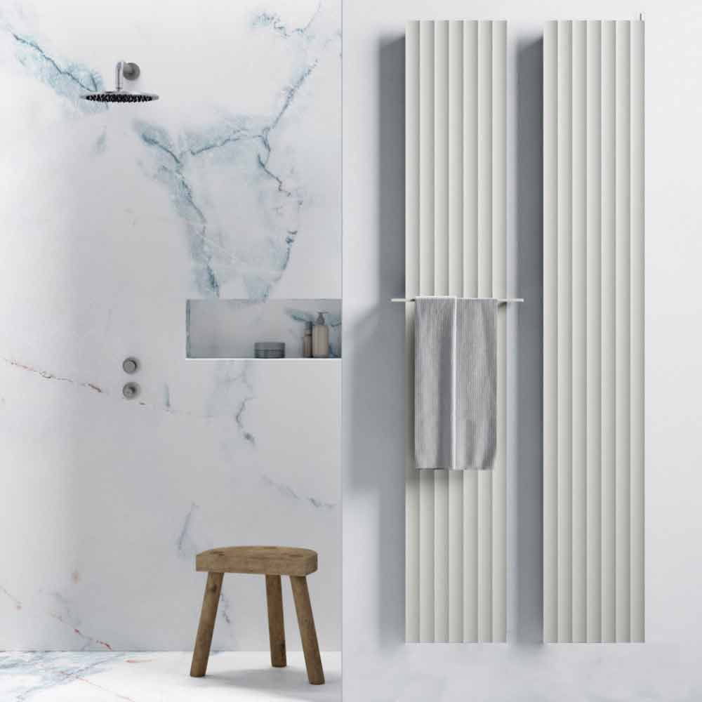 hydraulische Kühler verfügt über ein modernes Design, bei dem der eigentliche Protagonist die Architektur ist, die sich durch Linien mit wechselndem Rhythmus auszeichnet, die Lichtspiele und Dialoge mit dem umgebenden Raum erzeugen.