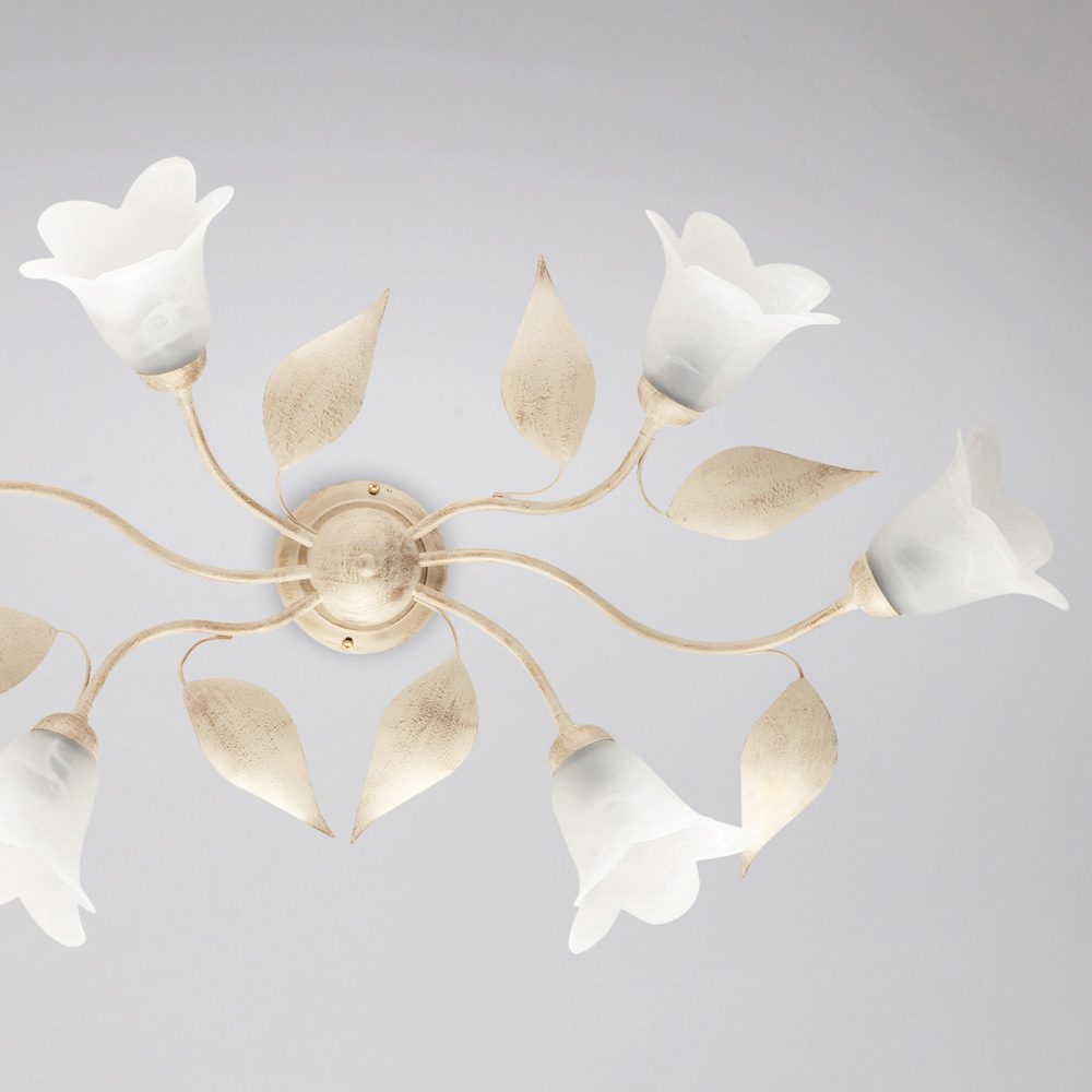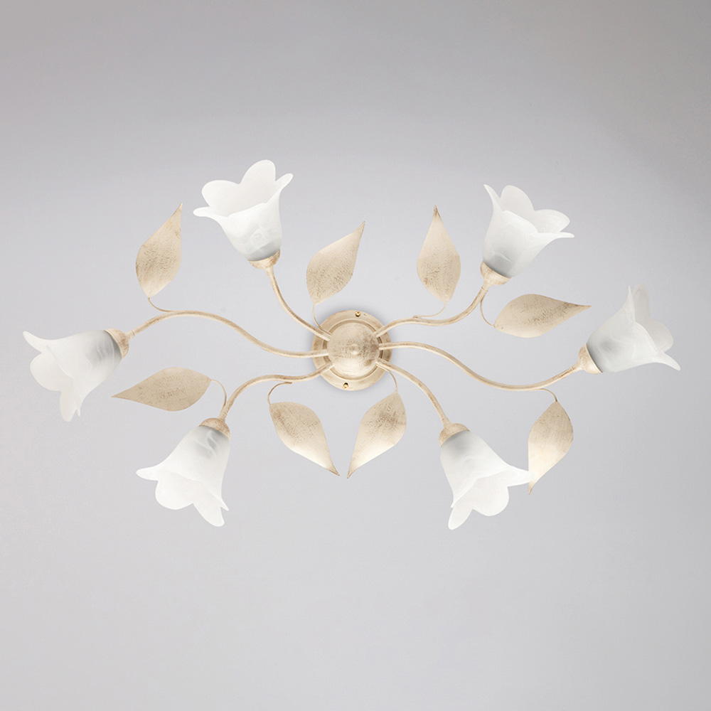 Die sorgfältig ausgewählten Materialien – Eisen und Glas – verleihen der Leuchte eine elegante Wirkung und ein angenehmes Licht. Diese vollständig in Italien gefertigte Deckenleuchte ist das Ergebnis akribischer Handwerkskunst, die Ästhetik und Funktionalität gleichermaßen vereint.
