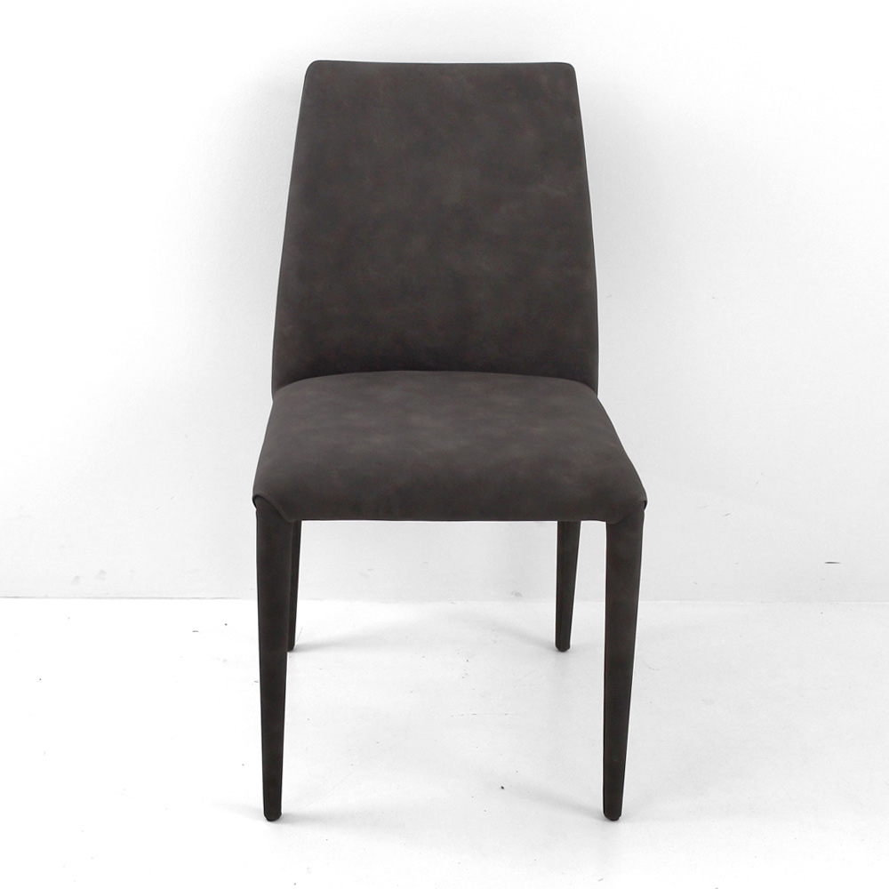 vollständig mit erdfarbenem Rebellen-Kunstleder bezogen ist. Sehr eleganter Stuhl, der jedem Wohnzimmer eine
