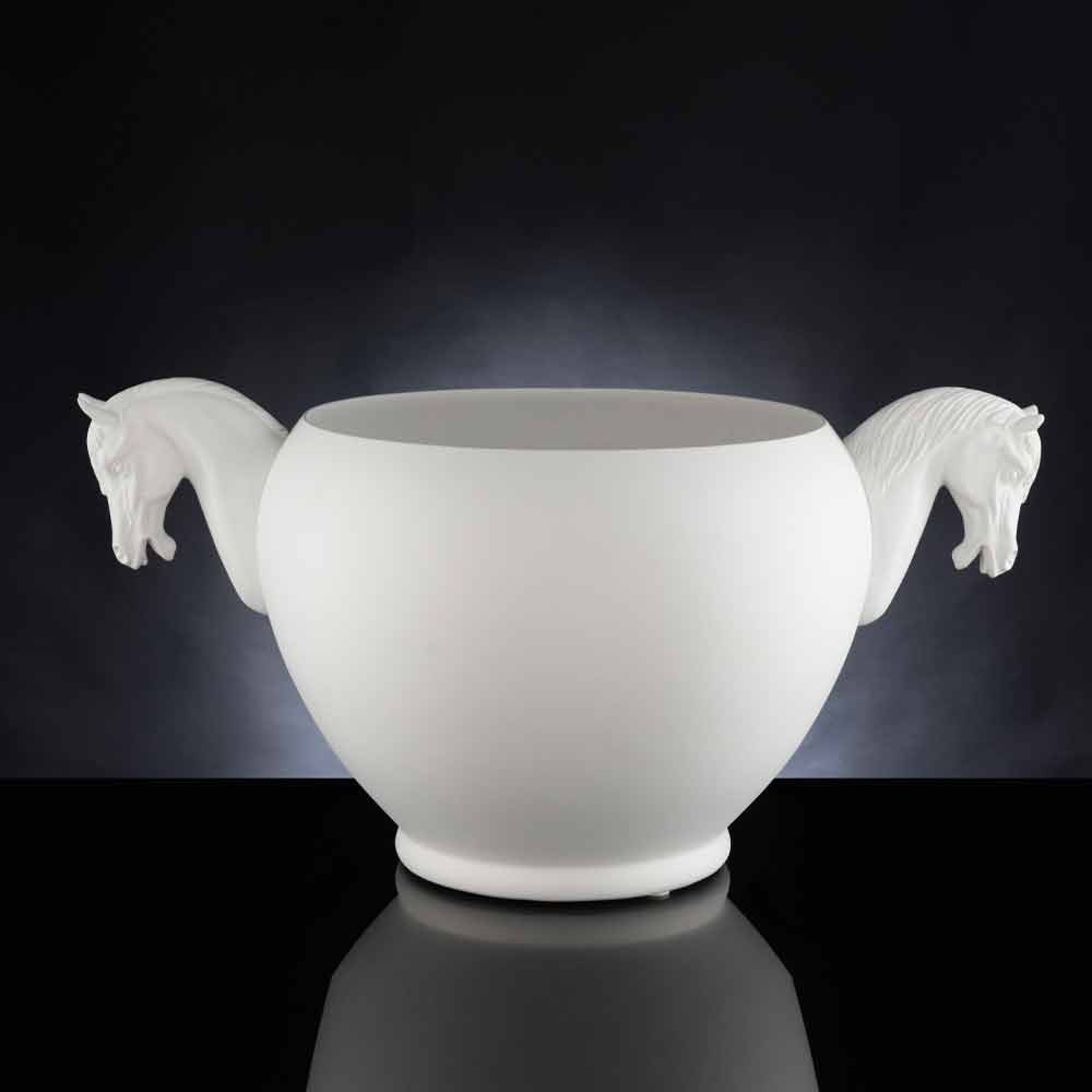 Dekorative Vase aus Keramik handgefertigt in Italien von Handwerkern, die seit Generationen Experten in der Branche sind. Eine einzigartige Ästhetik, die sich durch einfache Linien und Formen auszeichnet, die durch die zwei seitlichen Details in Form eines Pferdes bereichert werden, die ihre Originalität betonen und sie zu einer perfekten Lösung sowohl für klassische Umgebungen als auch für modernere Räume machen, in denen sie ein wunderbares Spiel der Kontraste schafft zwischen verschiedenen Stilen dank der wunderbaren vorgeschlagenen Ausführungen, die eine nüchterne und vielseitige Lösung und eine exzentrischere Idee mit starker szenografischer Wirkung bieten. Die Verwendung von Keramik und Handwerkskunst steigern ihren Wert und Wert, um ein exklusives und hochwertiges Ergebnis zum Leben zu erwecken. Ein ideales Design für die unterschiedlichsten Umgebungen, von der Wohnungseinrichtung bis hin zu Hotels, Restaurants, Objektbereichen, Spas, aber auch als Rahmen für Veranstaltungen und Hochzeiten.