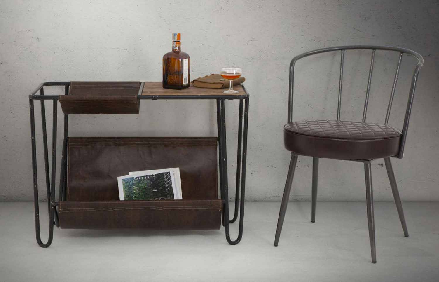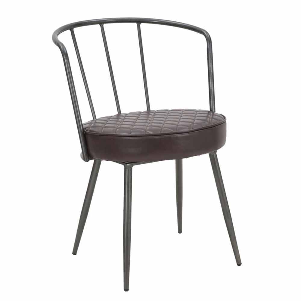 Moderner Sessel im Industriedesign aus Eisen und Kunstleder.