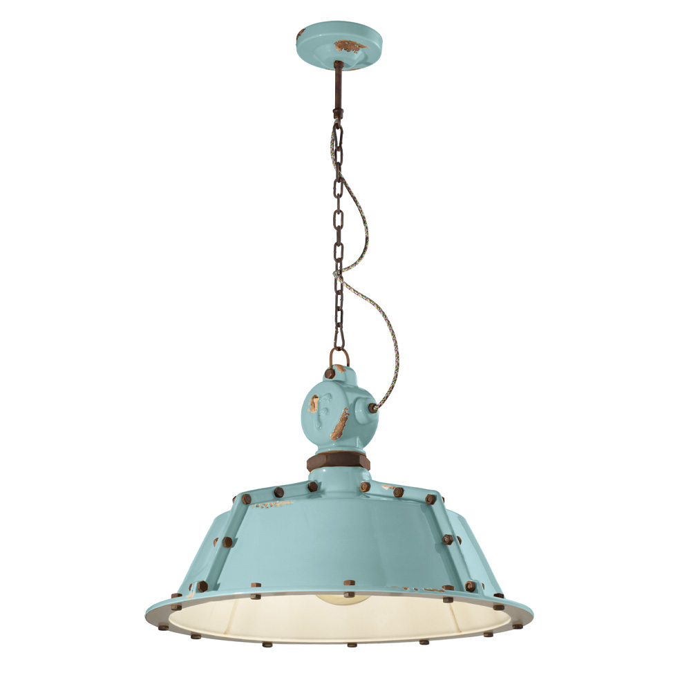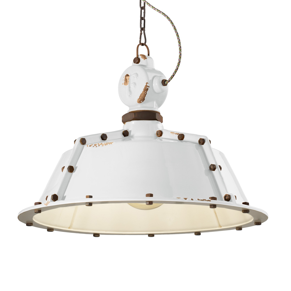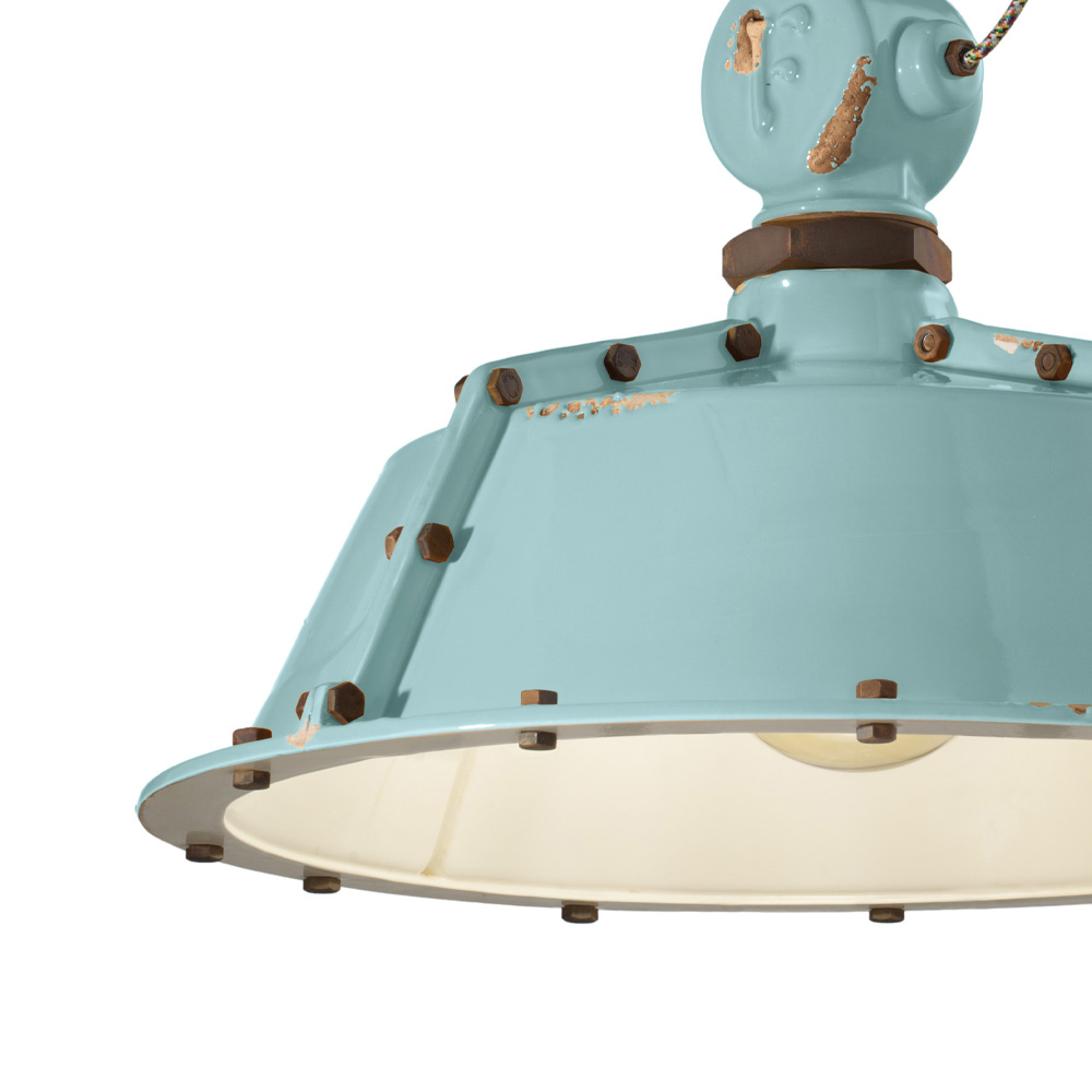 Handgefertigte Hängelampe aus Keramik und Eisen, industrielles Design, hergestellt in Italien von Ferroluce.